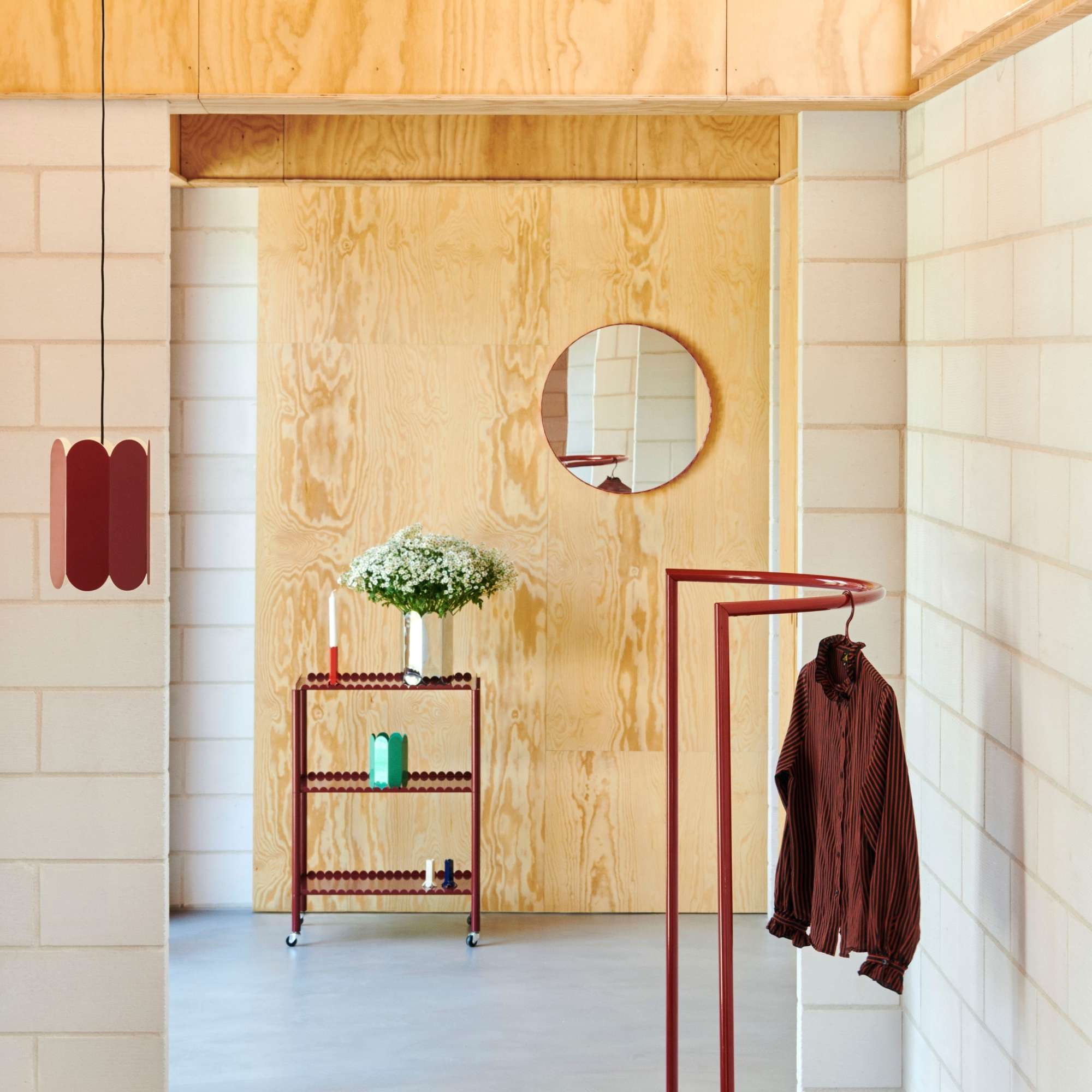 Designed by Belgian duo Muller Van Severen, Arcs Mirror is formed by a unified chain of vertical arcs that encase the mirror to create an elegant, scalloped edge. Made in stainless steel with a mirrored finish and powder coated steel in different colours, its variety of sizes and shapes ranges from a small round mirror to a large rectangular one, making it suitable for all rooms and uses.