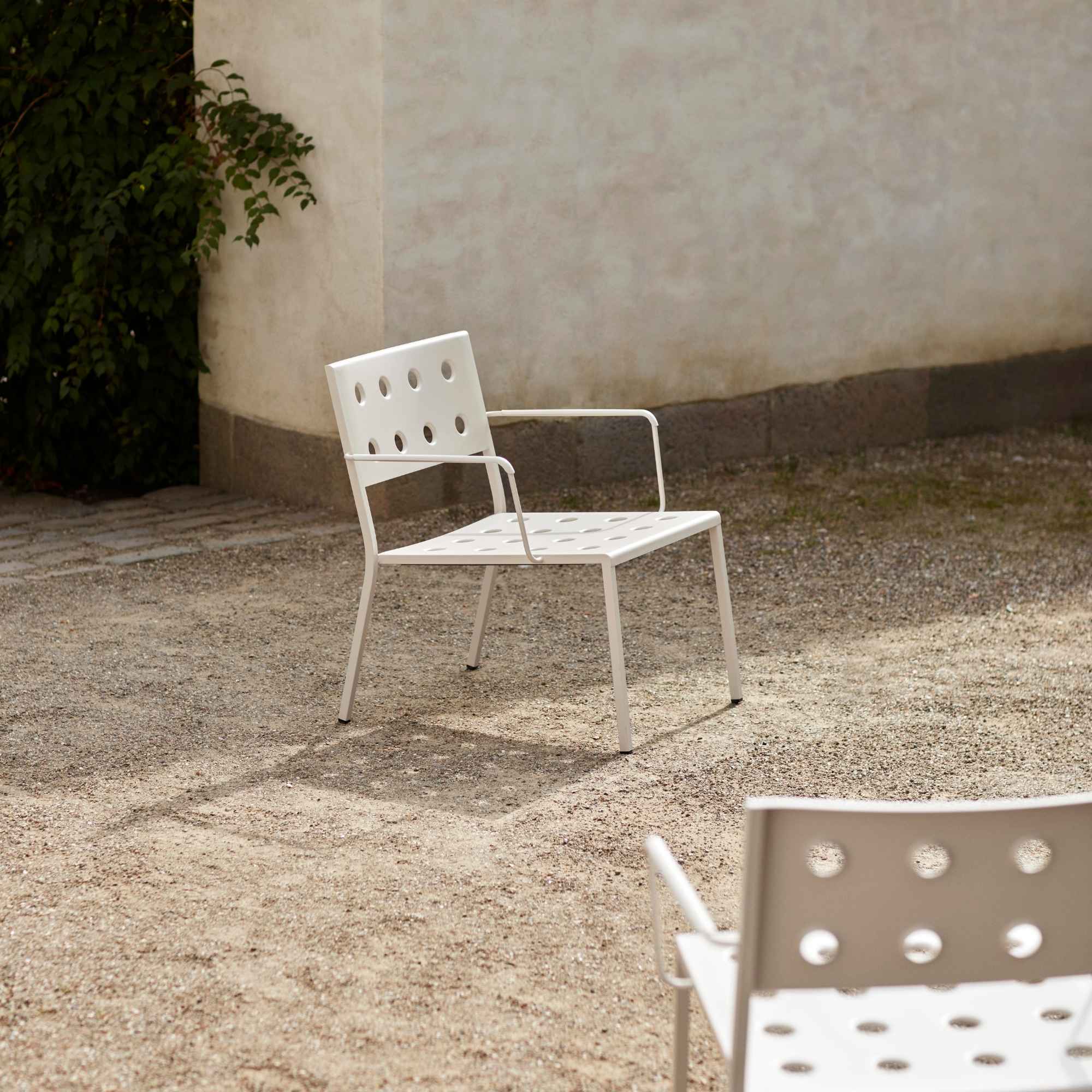 The Balcony Lounge Chair is a low and comfortable lounge chair from HAY's Balcony's outdoor collection. The wide, square design is softened by the rounded back, with the multiple holes in the seat and back strengthening the construction, as well as creating a distinct expression. It is made in powder-coated steel with an outdoor primer for optimal resilience and durability.
