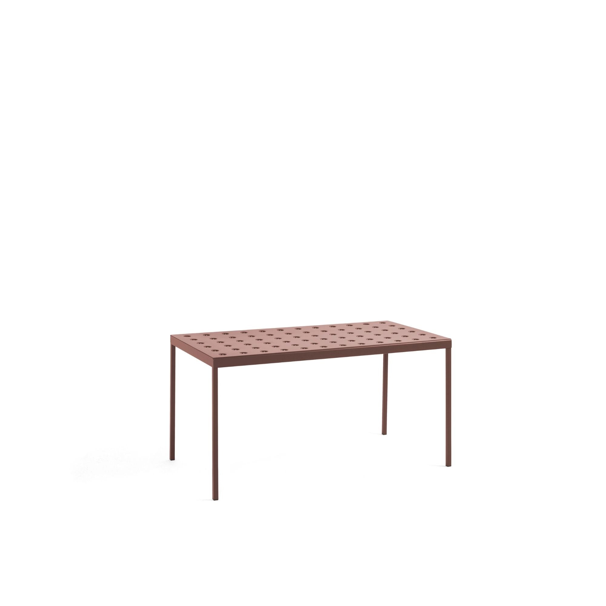 The Balcony Table is an elegant dining table from HAY's Balcony outdoor series. The simple rectangular design is softened by slender legs, with the multiple holes on the table's surface strengthening the construction, as well as creating a distinct expression. It is made in powder-coated steel with an outdoor primer for optimal resilience and durability.