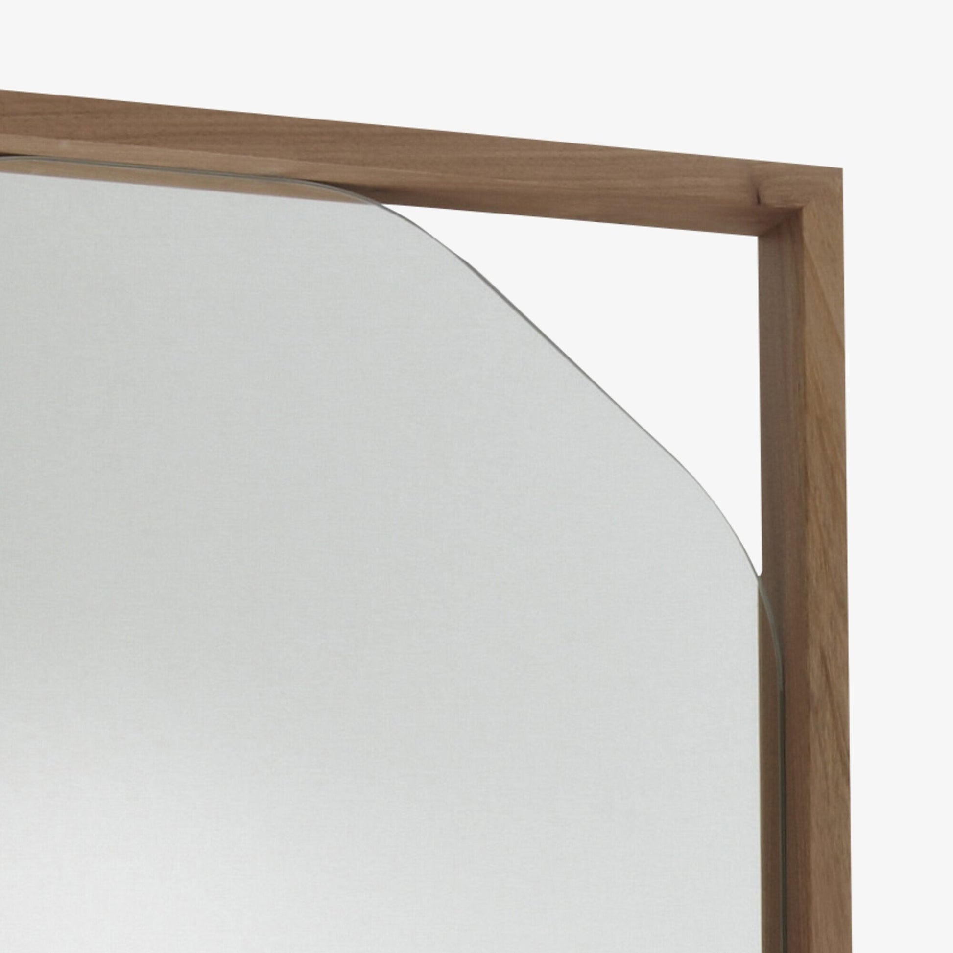Frame made from American solid walnut or black-stained solid Ash, the mirror glass is fixed to an MDF support with 2 struts which enables the mirror to be fixed to the wall either horizontally or vertically.