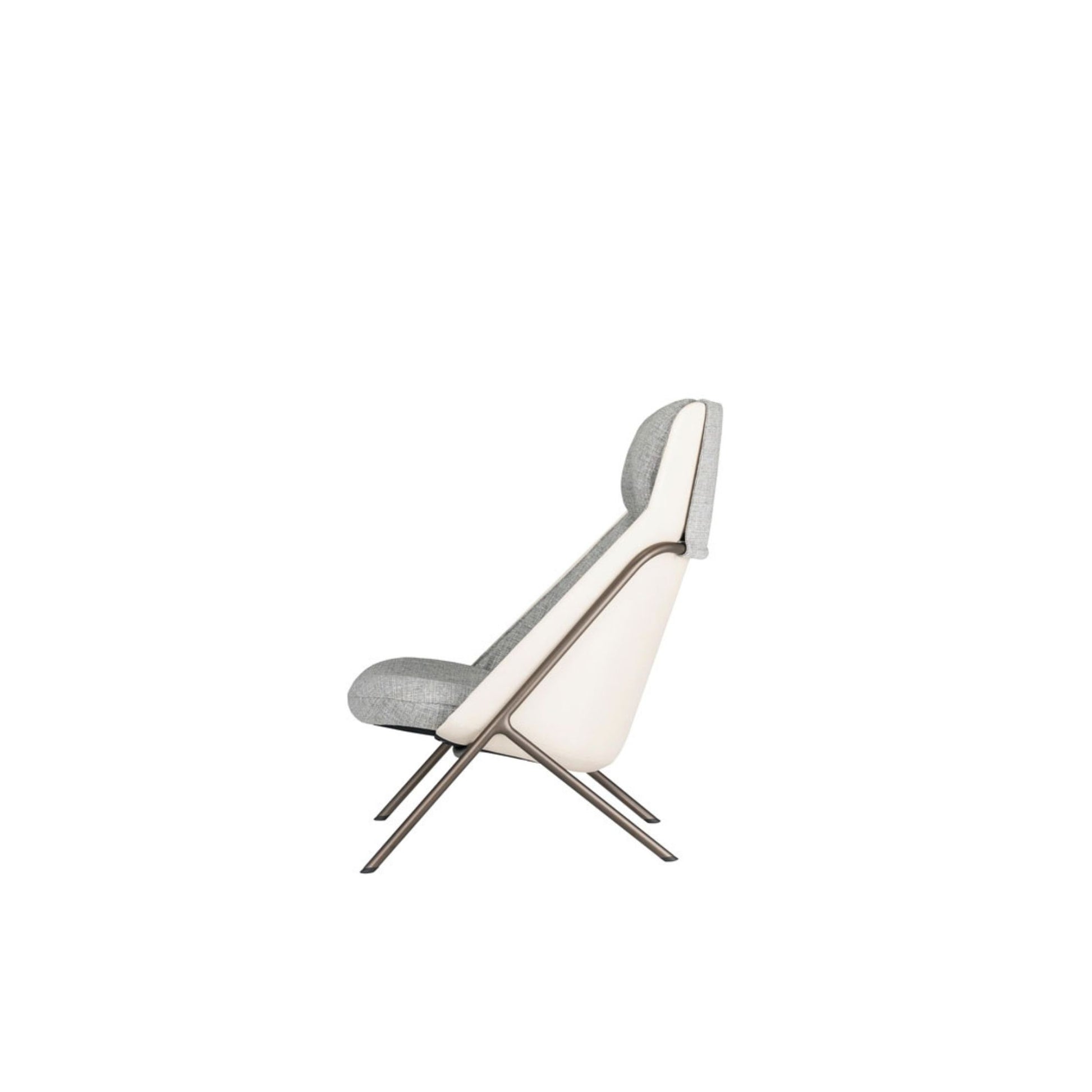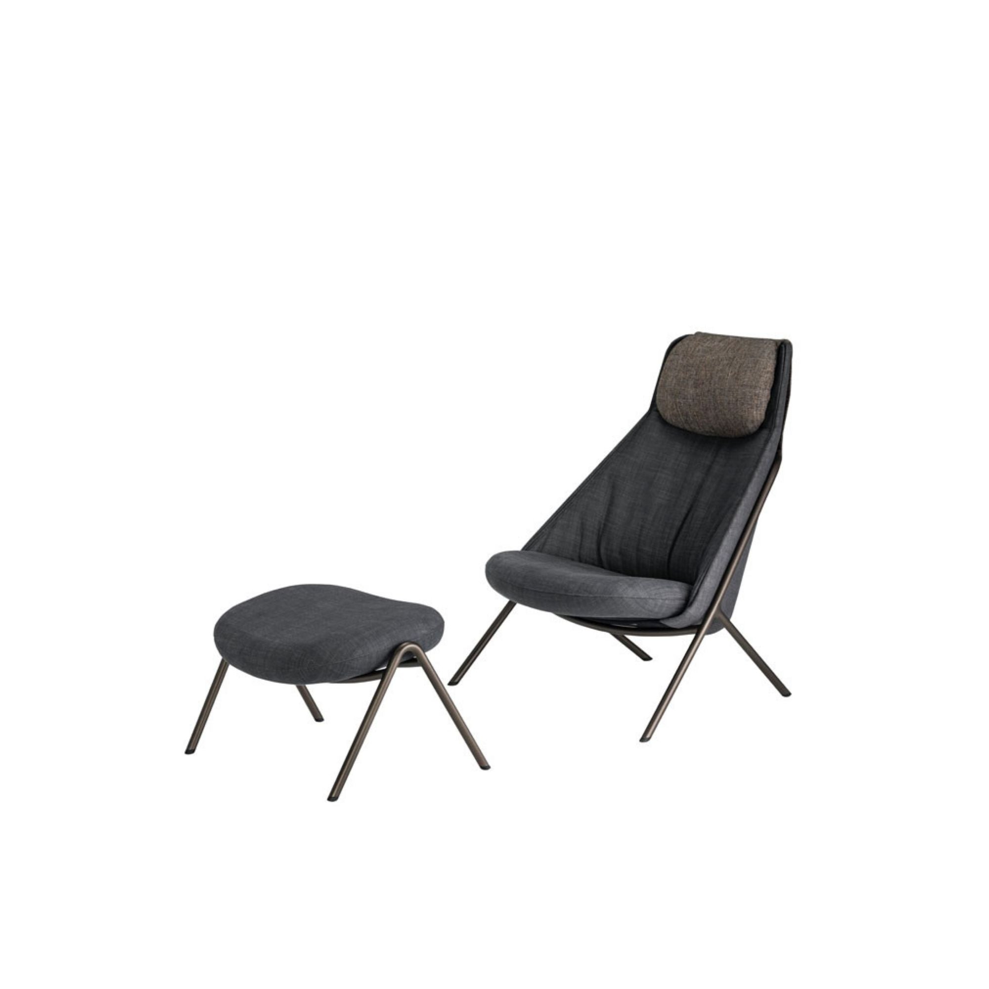 An innovative design featuring a three-dimensional shell that is formed using advanced technology and rests on steel legs. The high back model features a headrest for extra support and comfort. The low back version accentuates the frame’s lines for a more stylish air. Both versions offer the fun option of choosing different looks for the front and back of the shell . Add the ottoman for even greater relaxation. The legs comes in either steel metallic grey powder coating or hairline silver plating.