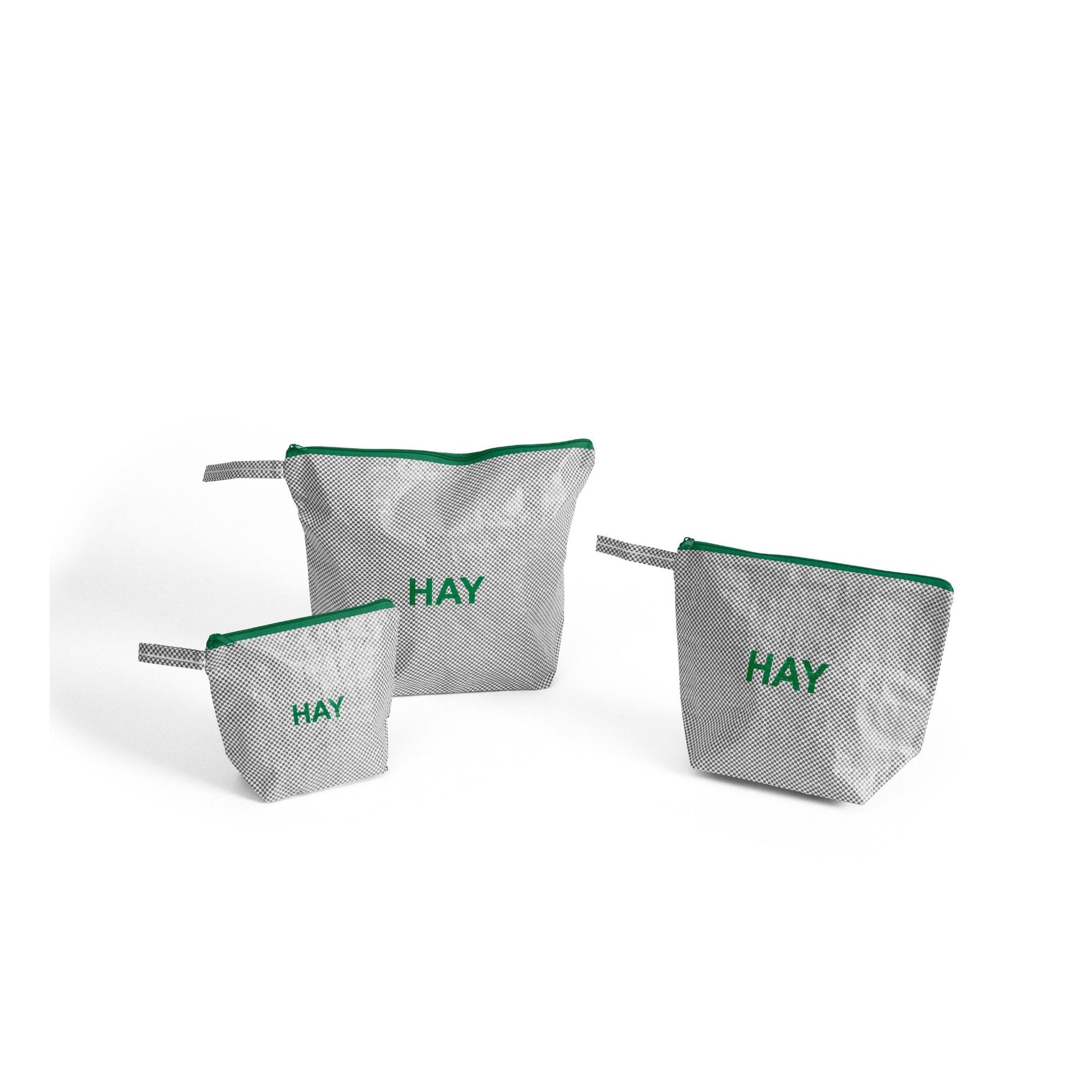 Made in a strong and durable waterproof material containing 80% recycled plastic, the Candy Mono Wash Bag is a range of colourful and practical wash bags for storing and transporting cosmetics and bathroom essentials. Featuring a zip fastening and HAY logo, they keep your items securely enclosed without getting wet. Available in three designs, the Wash Bag, Box Wash Bag and Flat Wash Bag, each set comprising of three wash bags in different sizes. Available in different colour options.