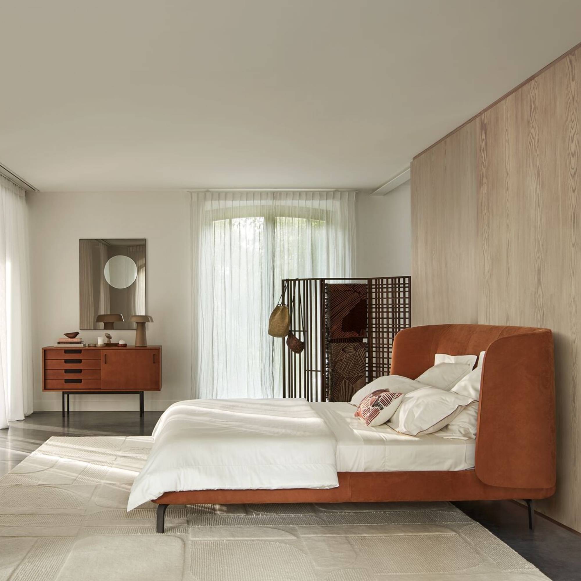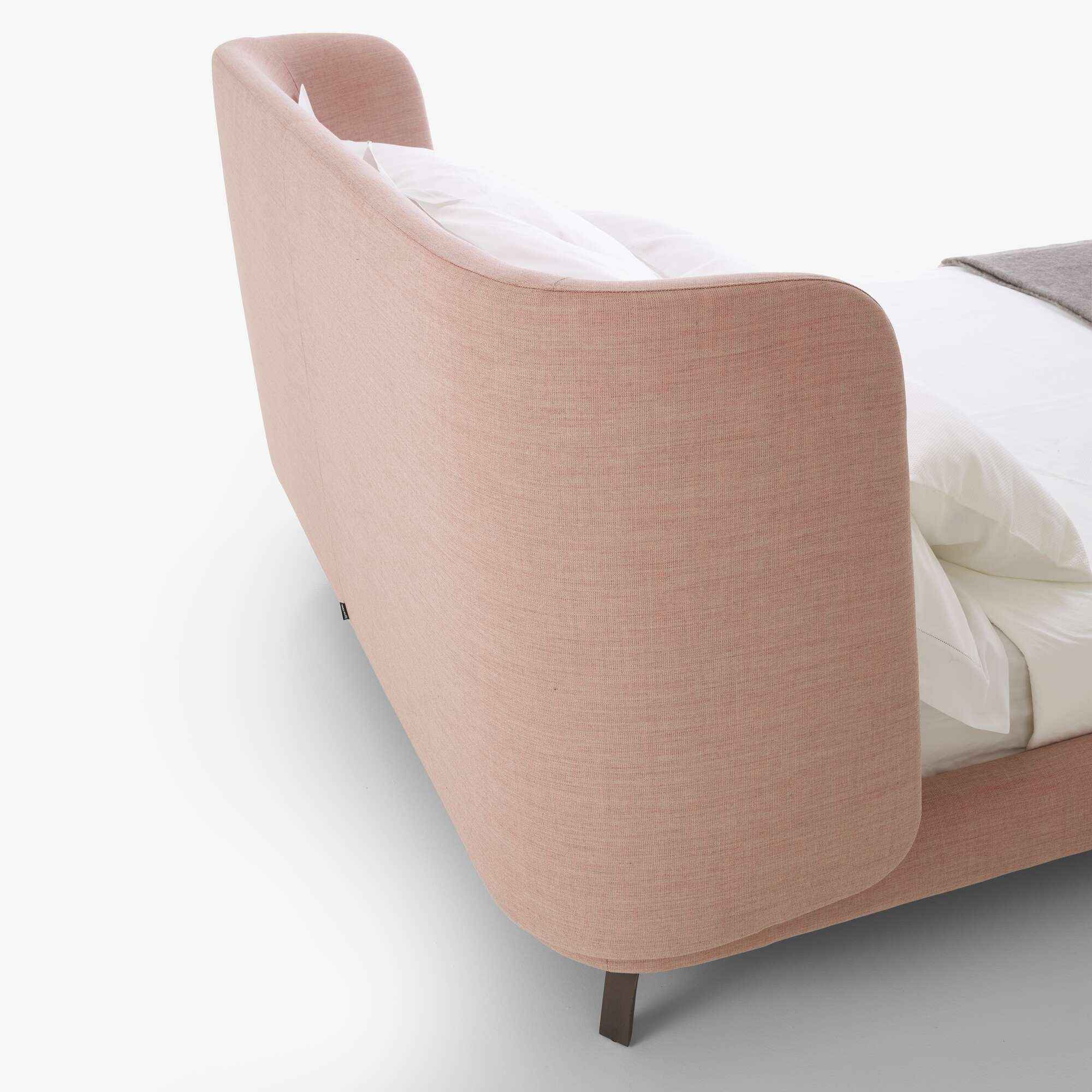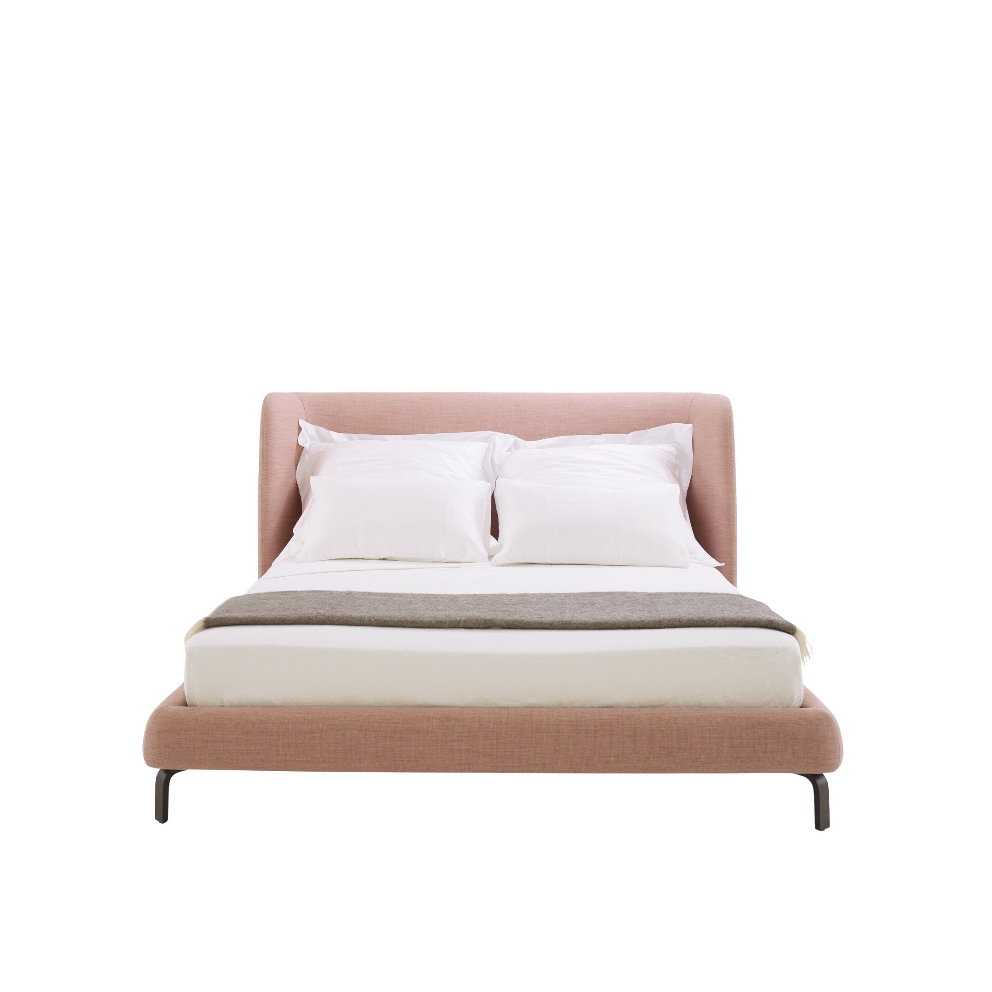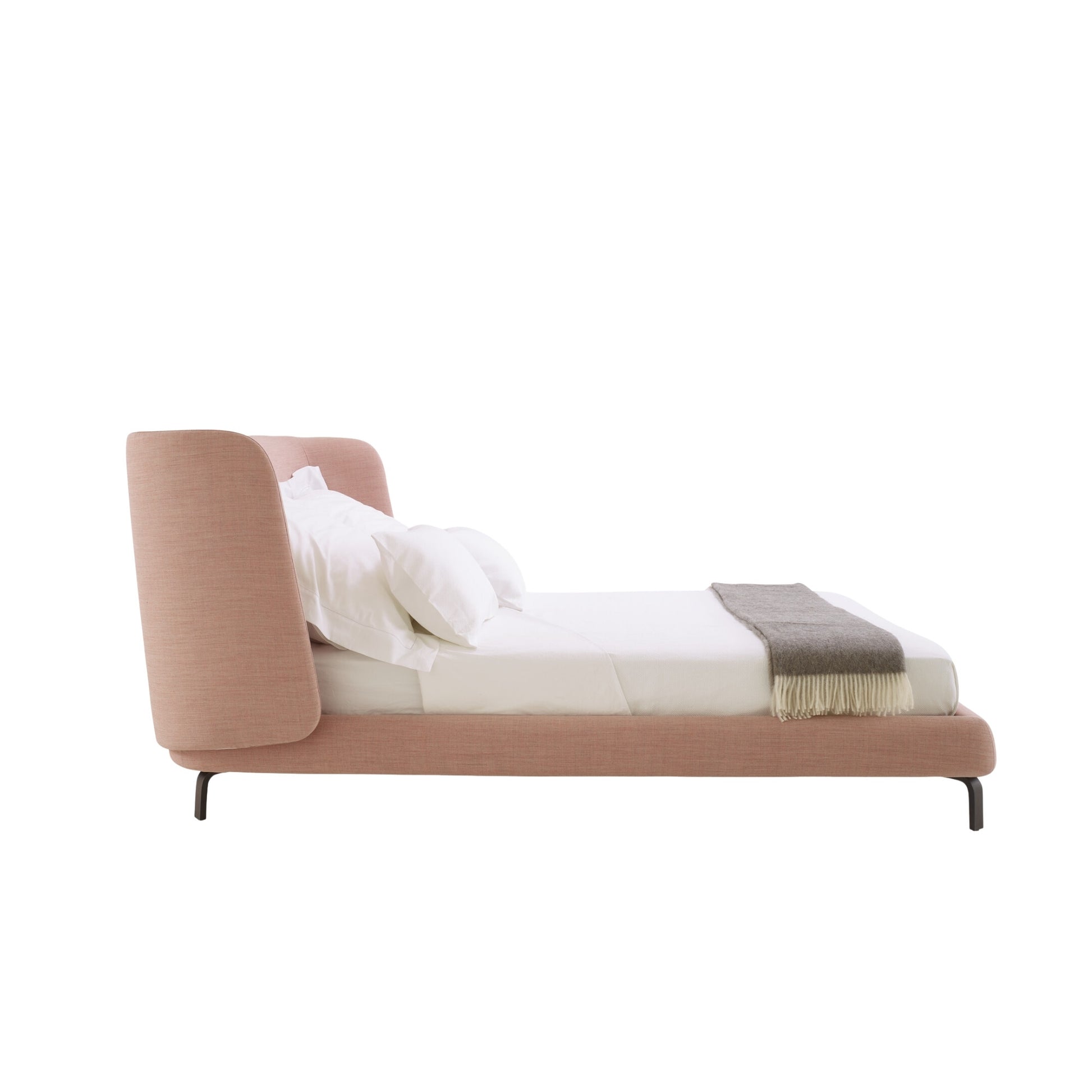 Designers Nasrallah & Horner were invited to rethink the bed, as much in terms of its function as its use. The upholstered headboard is evocative of a shell: it is an invitation to read, to watch TV or even write. The impression of continuity between the headboard and the base confers great visual lightness, even in the case of the version with the high headboard. The Desdémone bed beautifully reflects the trend for a variety of uses, unencumbered by objects. In a way, the bed becomes the centre of the universe. The bed is a cocoon : it brings protection and serenity, becoming the ideal refuge for a perfect night's sleep.