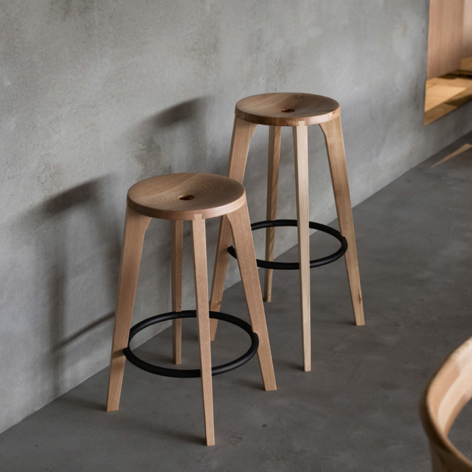 Designed by Staffan Holm, the Dovetail stool collection celebrates one of the earliest and most elegant woodworking techniques: the dovetail joint. Crafted with precision, its signature connection highlights both form and craftsmanship, while the slightly curved seat ensures comfort for extended seating. A sculptural and refined piece, the stool embodies timeless Japanese design and understated elegance, making it a striking addition to bars, kitchens, or dining spaces.
