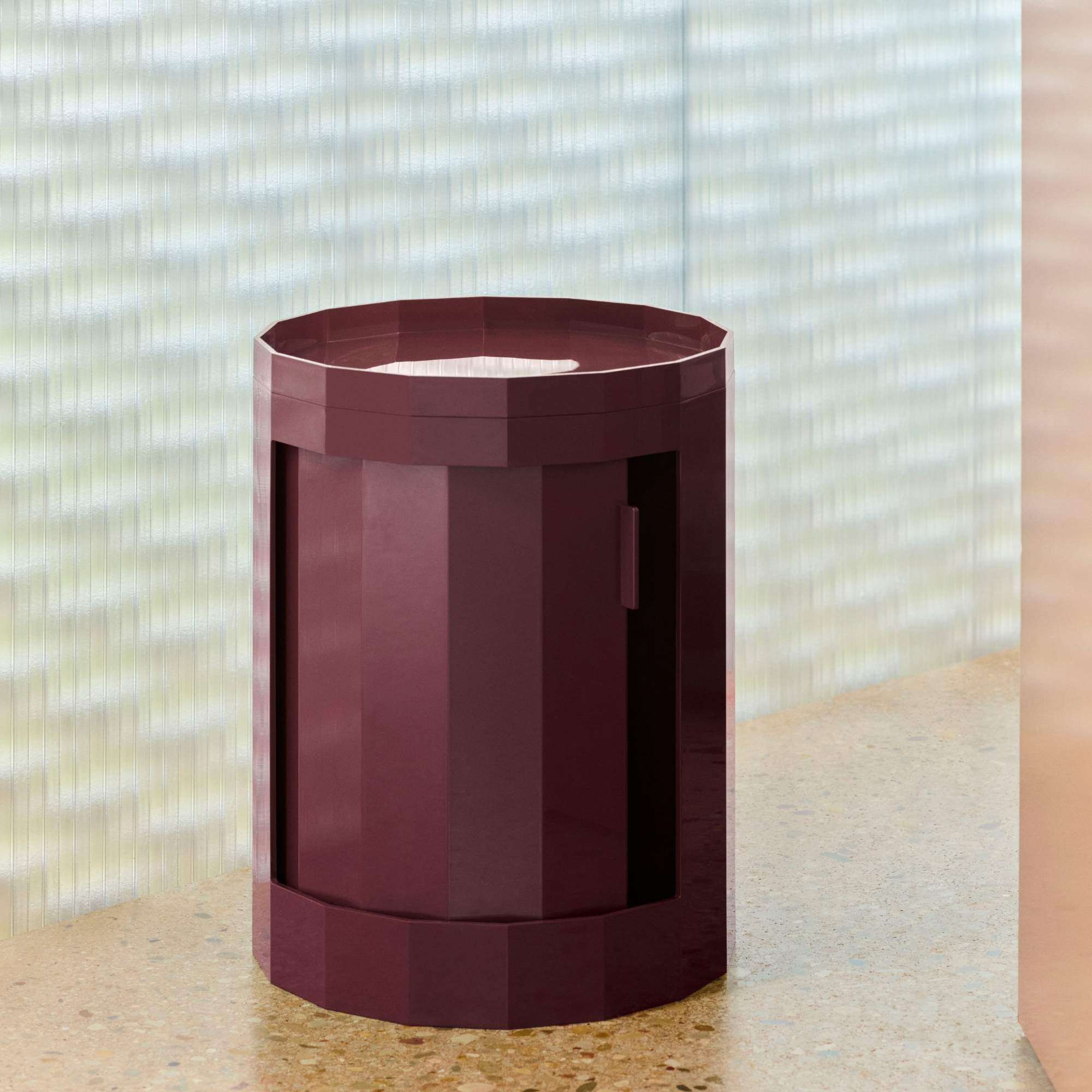 Designed for HAY by Dutch designer Stefan Scholten, the Facet Cabinet is a multifunctional storage solution that’s easy to move around. With its revolving integrated door and discreet wheels, it adapts effortlessly to a variety of settings. Made from at least 30% post-consumer recycled ABS, Facet comes in a range of models, colours, and heights. Ideal for organising and tidying everyday items, its versatile design works equally well as a bedside cabinet, side table, or home office organiser.