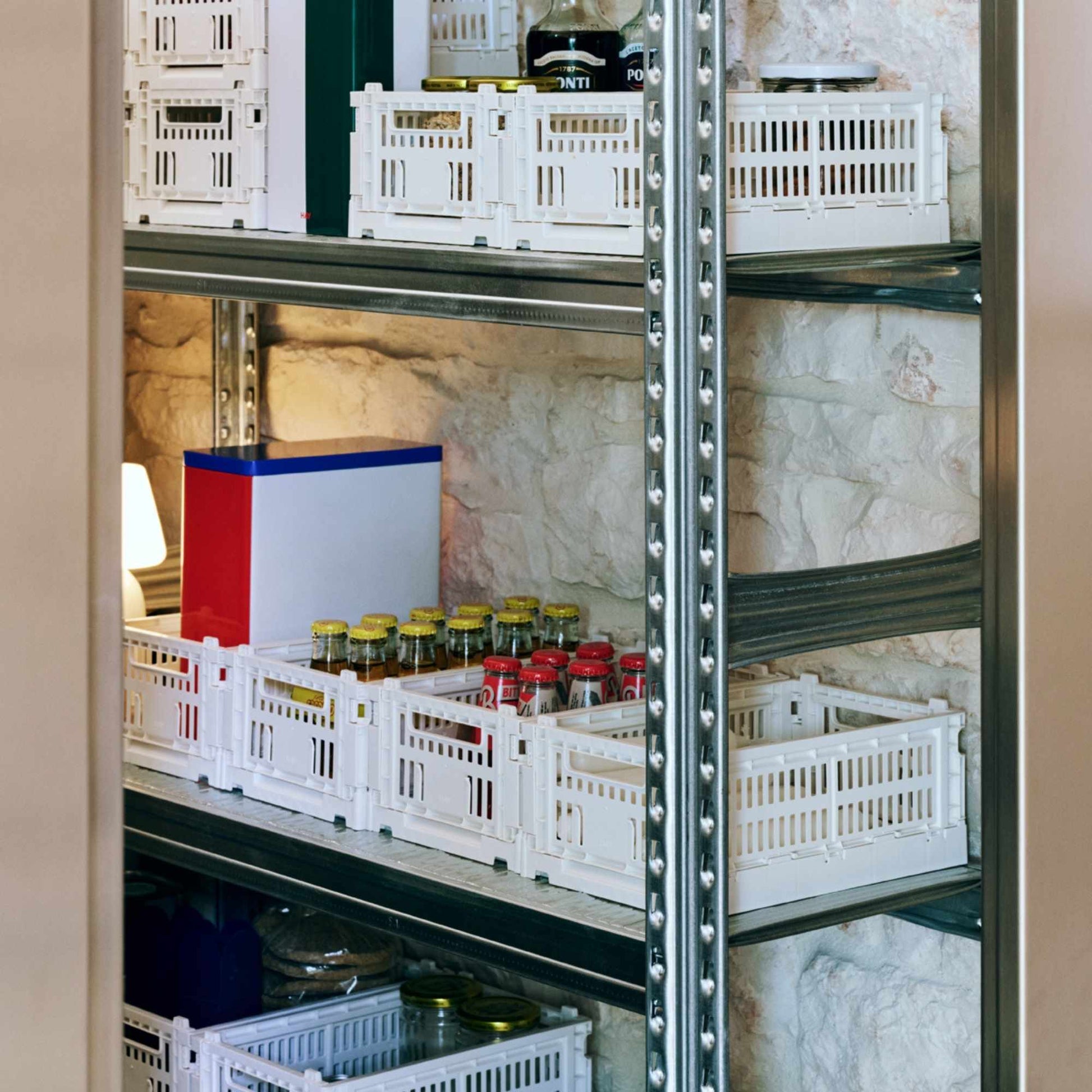 HAY’s Colour Crate is a series of handy, adaptable storage boxes with a perforated design. Made from 100% recycled post-consumer plastic, these stackable crates come in cubes, squares, and rectangles in a wide variety of colours and sizes. They can be supplemented with lids and wheels, and placed inside each other in multiple configurations, making them ideal for storage, display, and even innovative furniture items. Their multifunctionality, combined with their ability to be folded flat when not in use, makes them a versatile and space-saving storage solution.
