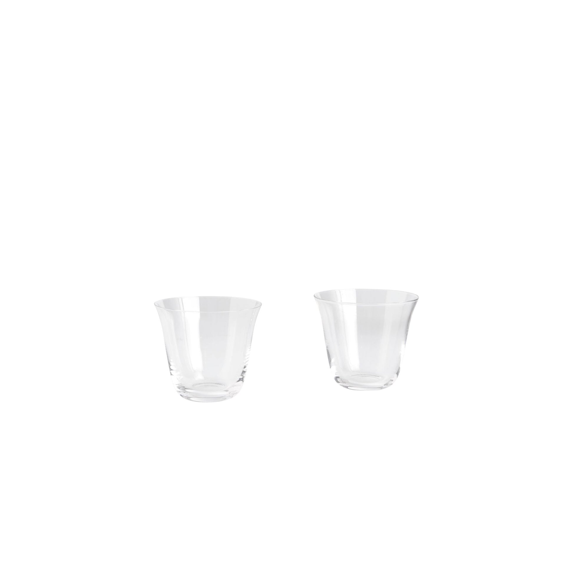 Featuring a distinctive silhouette with outwards-curving lip, the Curve Tumbler Glass offers a blend of simplicity and understated elegance. Handmade from delicate 20% recycled glass, the generous size makes it ideal for serving water, wine, and other drinks. The tumblers come in a set of two and can be used with matching glasses or other HAY tableware to add a refined touch to any table setting or social gathering.