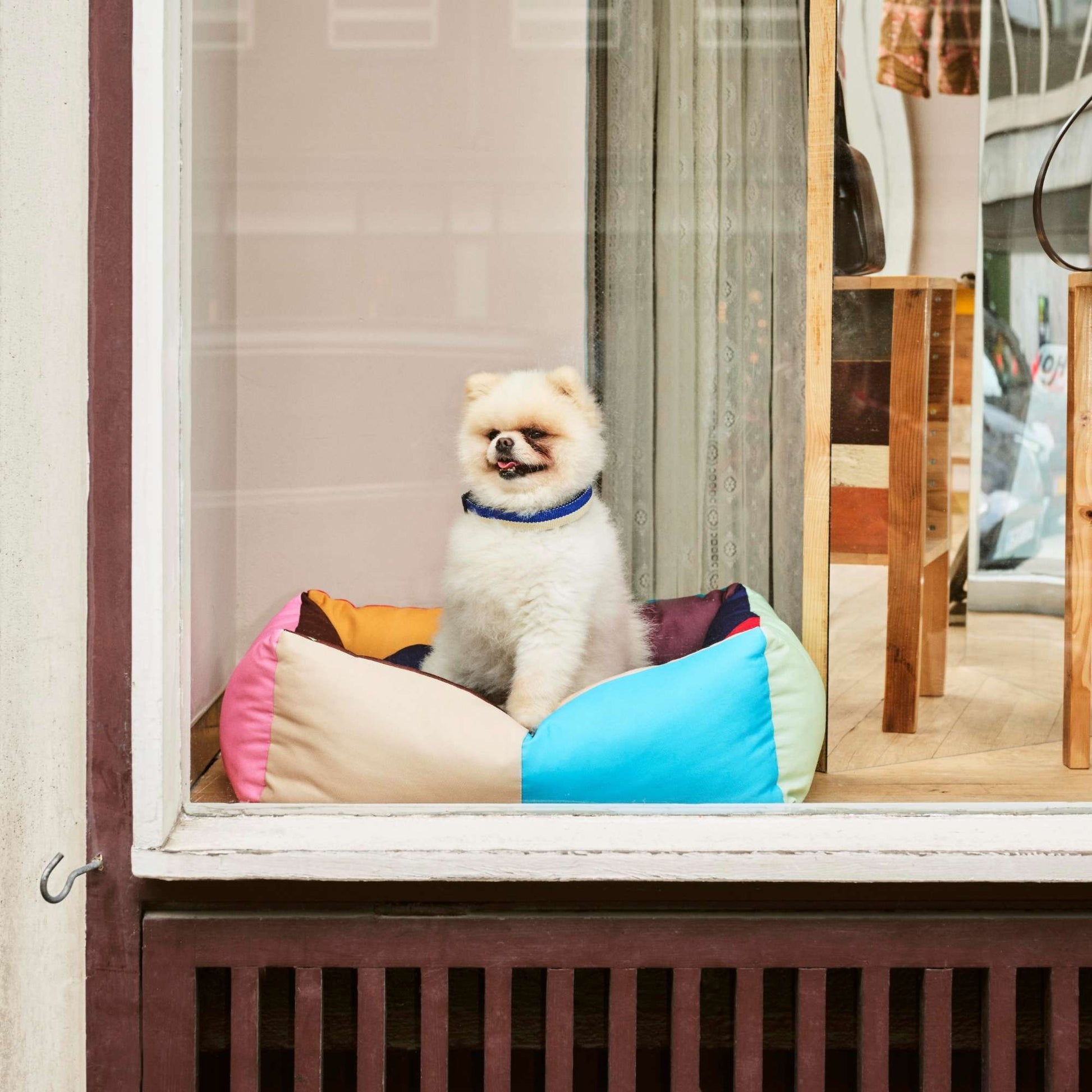 A design collaboration between Mette Hay and friend Barbara Maj Husted Werner, founder of Holly Golightly – a former boutique for curated fashion and interiors – HAY Dogs invites dog owners and their pets into the HAY universe with functional and colourful accessories. Featuring a playful colour-blocked design, the Dog Bed is made from strong recycled polyester with a washable, removable cushion filled with recycled polyester. The bed is available in three different sizes in different designs.