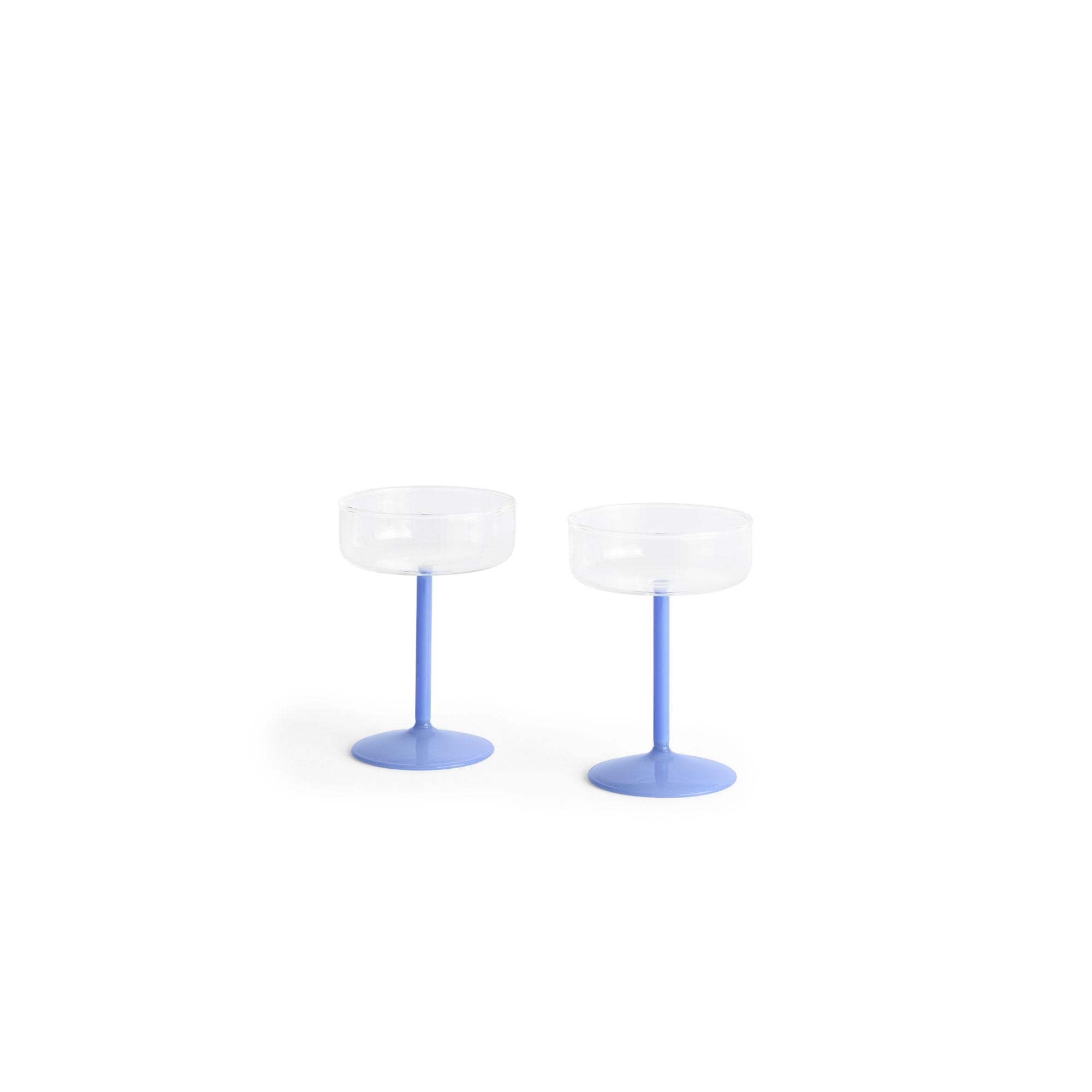 Tint Coupe Glass is a collection of elegant glasses made in tinted borosilicate glass. The classic coupe design features a long stem and shallow, broad bowl, making it suitable for serving champagne and cocktails, as well as ice cream, fruit or other desserts. The glasses come in sets of two.