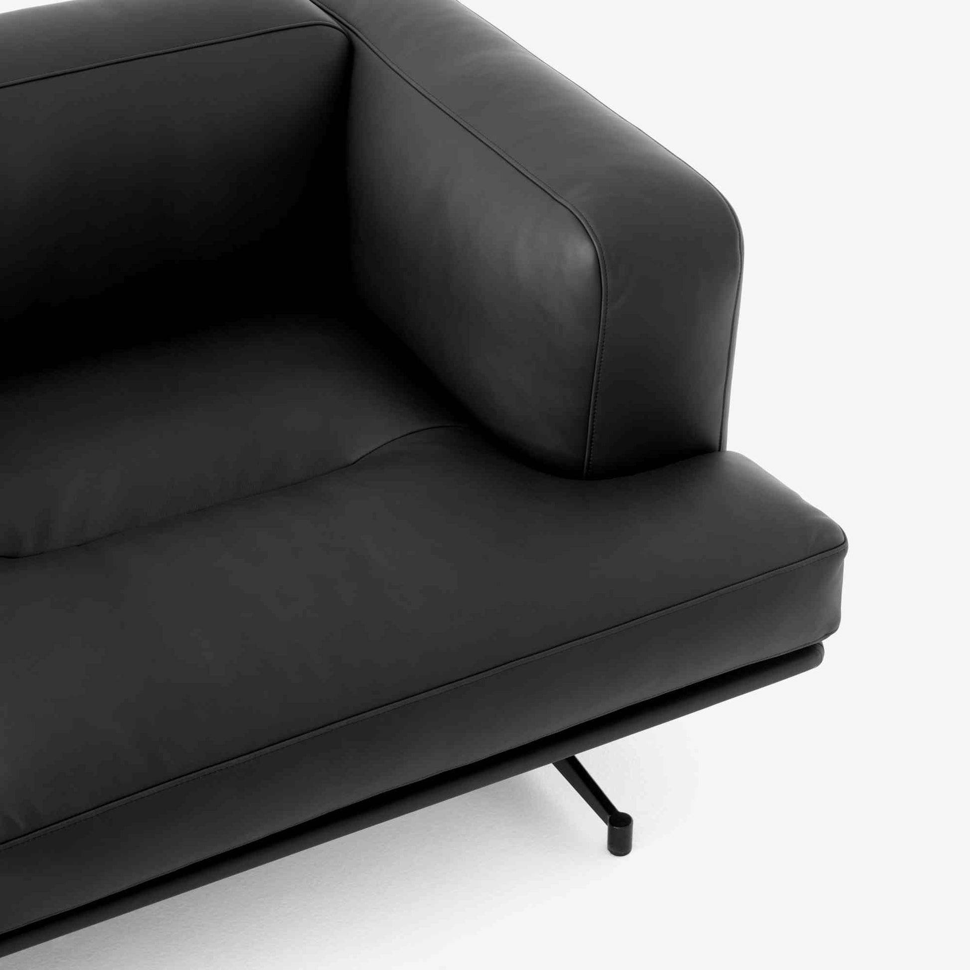 Designed by Torbjørn Anderssen and Espen Voll, the Inland sofa combines deep comfort with a sleek architectural form. Its low profile, high arms, and black steel base create a sense of floating elegance. Available in 3-Seater, Chaise Lounge sofa options.