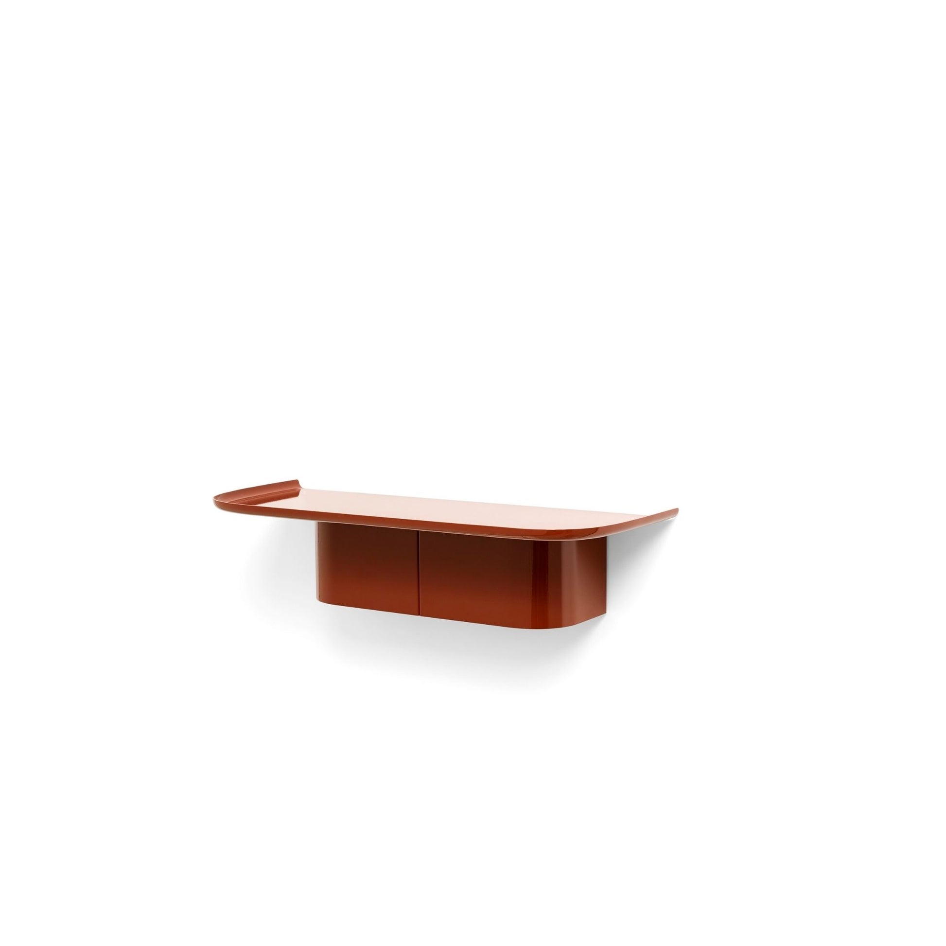 Korpus Shelf is a series of colourful wall-mounted shelves created for HAY by Norwegian product designer Andreas Bergsaker. Based on the desire to create a durable multi-purpose shelf from recyclable material, Korpus Shelf is made from sheet aluminium, known for its lightness, strength and ability to be reused countless times. The aluminium undergoes an industrial stamping and punching process to be formed into the distinctively curved column and top. Keyhole slits at the back facilitate mounting, while concealed hooks in the column provide additional hanging possibilities. Available in a wide range of sizes and colours, these versatile shelves can be used in many different rooms in the home, such as a coat rack in the hallway, storing kitchen utensils, hanging bathroom towels or displaying ornaments in the living room.