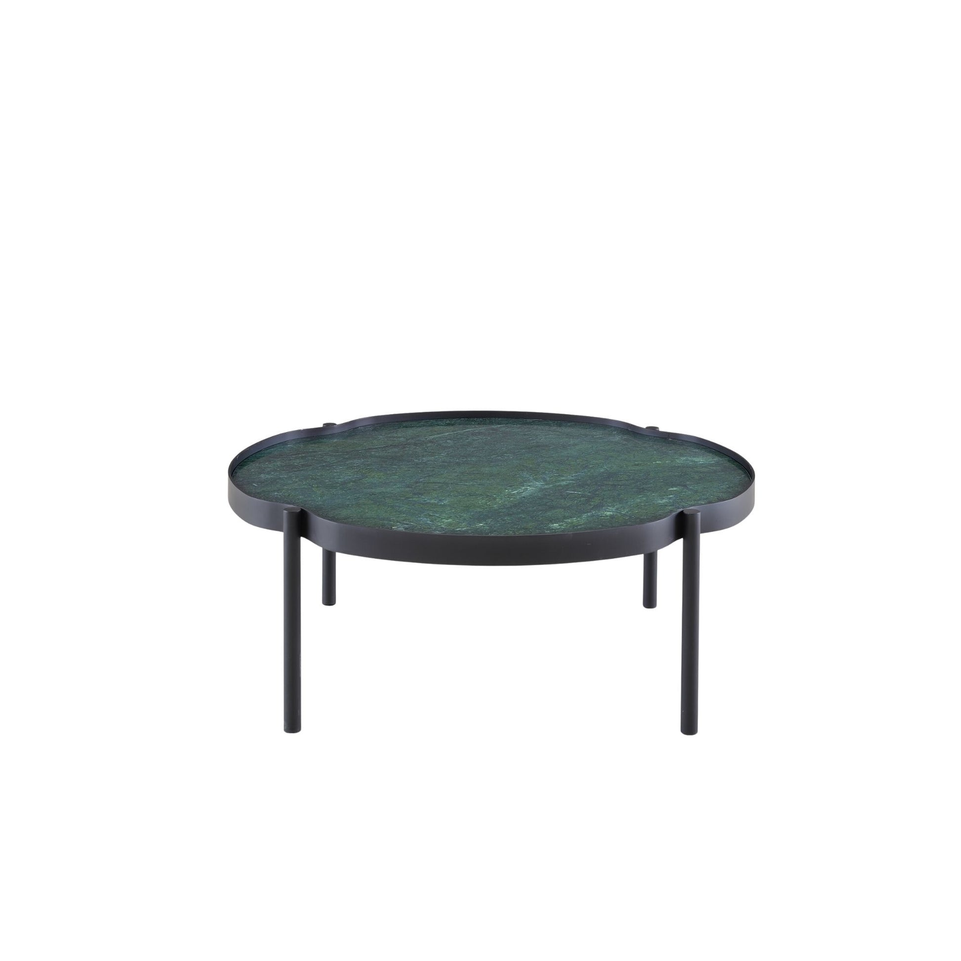 A clover-shaped table that comes in dazzling top finishes. The first Ligne Roset collaboration by Guillaume Delvigne adds a subtle playful touch to a hardy material with legs that appear to press into a square table to form a fluid silhouette. Available in four finishes. All marbles are finished in an anti-stain treatment.