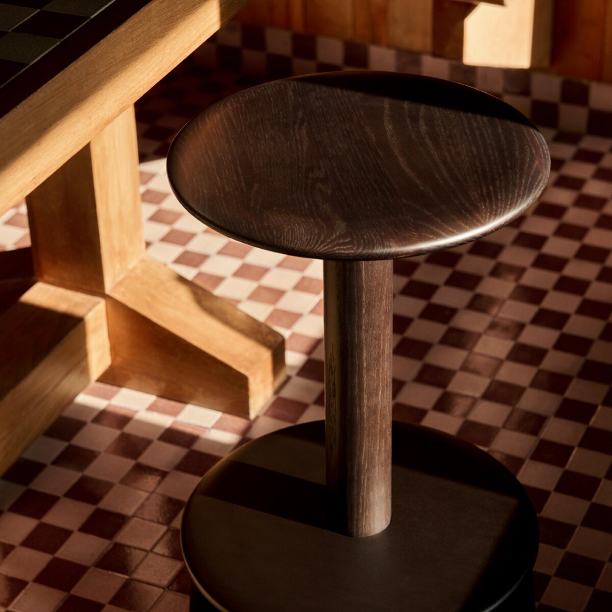 A graphically striking design with an anchoring sense of stability, Anderssen & Voll’s new Massif bar and counter stools denote a totemic silhouette in a compact form. Rich in materiality, the stool is complemented by the smooth swivel function of a solid oak seat.