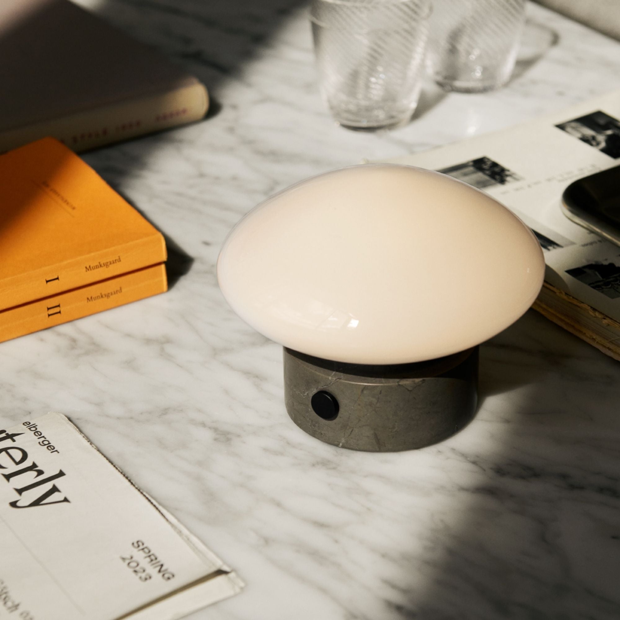 By virtue of its petite size and cordless functionality, the Mist portable lamp succeeds in bringing a sense of intimacy when placed on tables and countertops, emitting the same warm glow as the table lamp model.