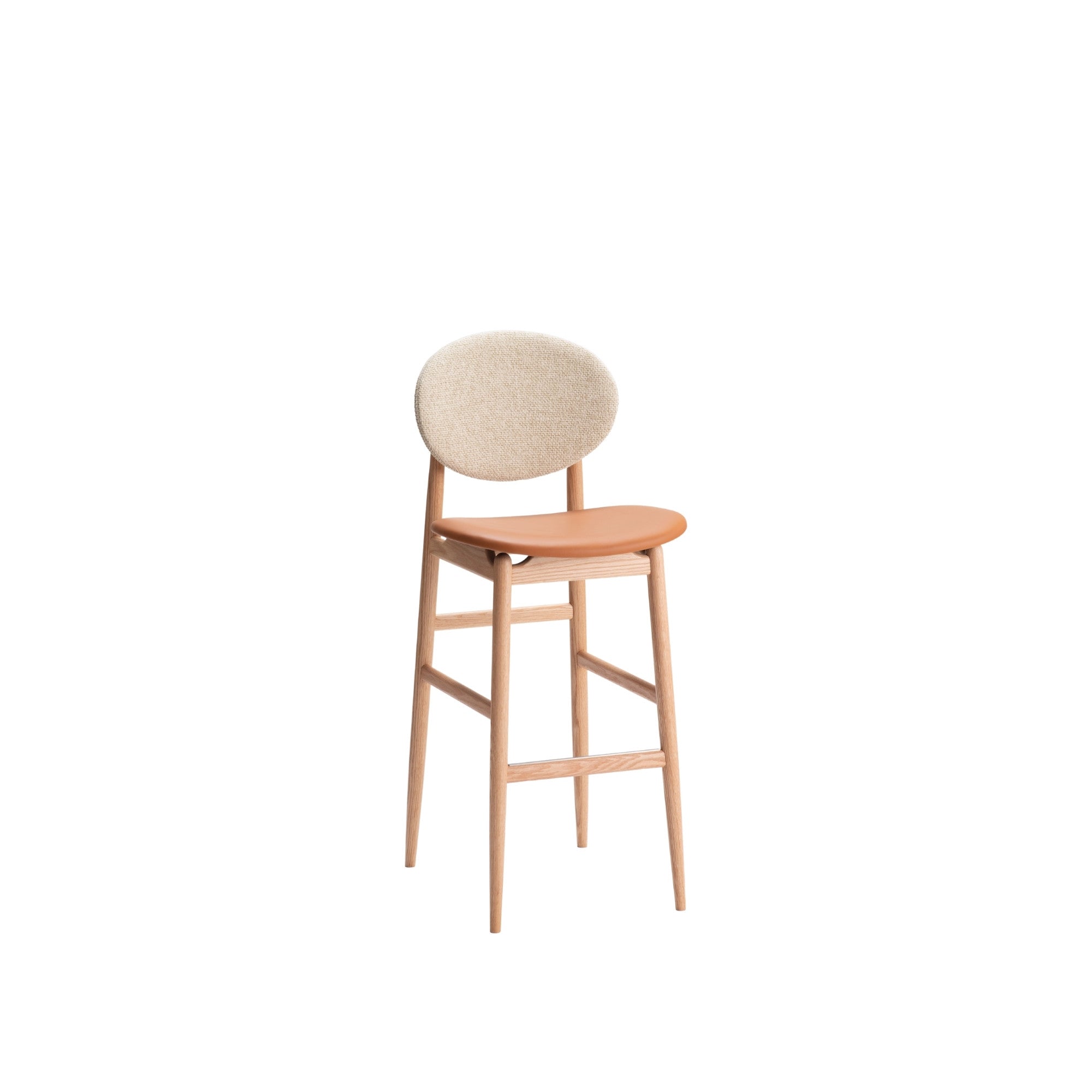 Available in all-wood or upholstered back and seat versions, the stool combines timeless elegance with functional comfort, making it ideal for bars, kitchen islands, or contemporary dining spaces.