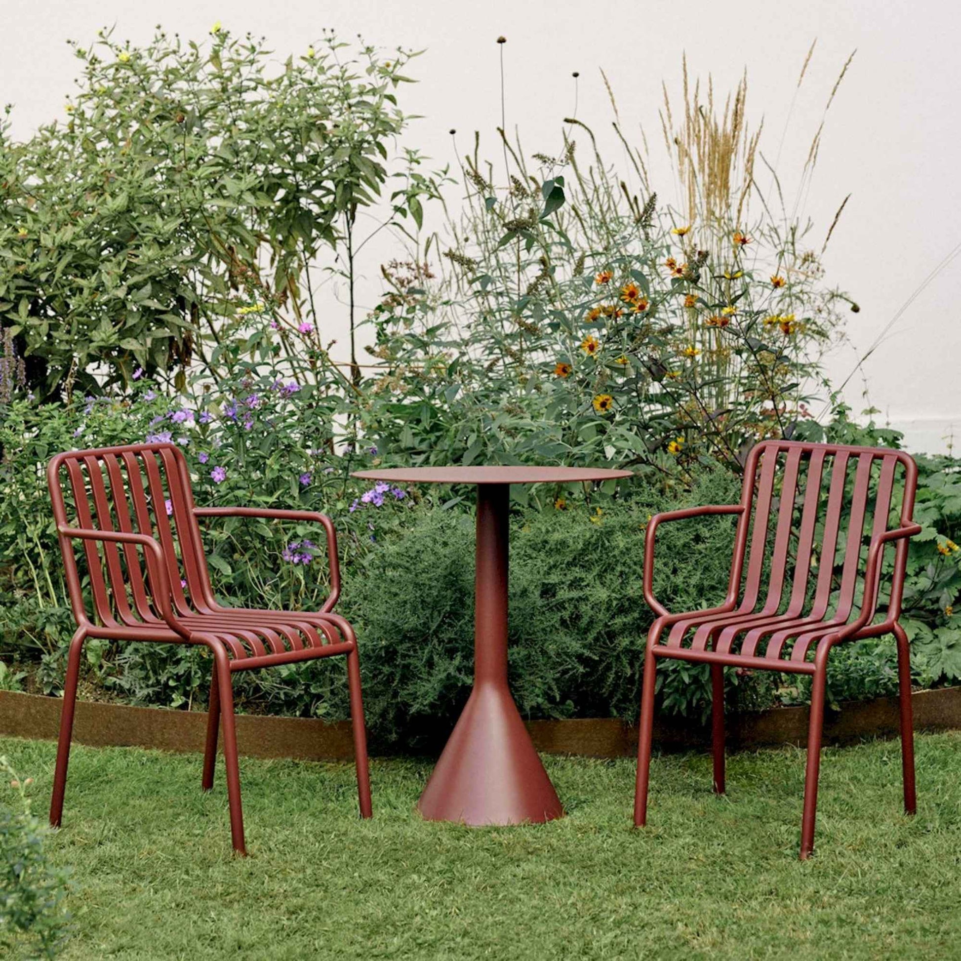 Designed for HAY by French brothers Ronan and Erwan Bouroullec, the Palissade Cone Table seamlessly complements the Palissade outdoor furniture collection. Its solid base and ultra-thin tabletop reflect the collection’s graphic language, creating a strong, refined table with clean lines and balanced proportions. Designed in colour and form to integrate effortlessly into a natural landscape or urban setting, Palissade Cone Table is suited to a wide variety of environments, from terraces, balconies, and gardens to cafés and public spaces. Made from powder-coated steel with a protective outdoor primer, it comes in a variety of sizes, with round or square tops and a curated range of colours.