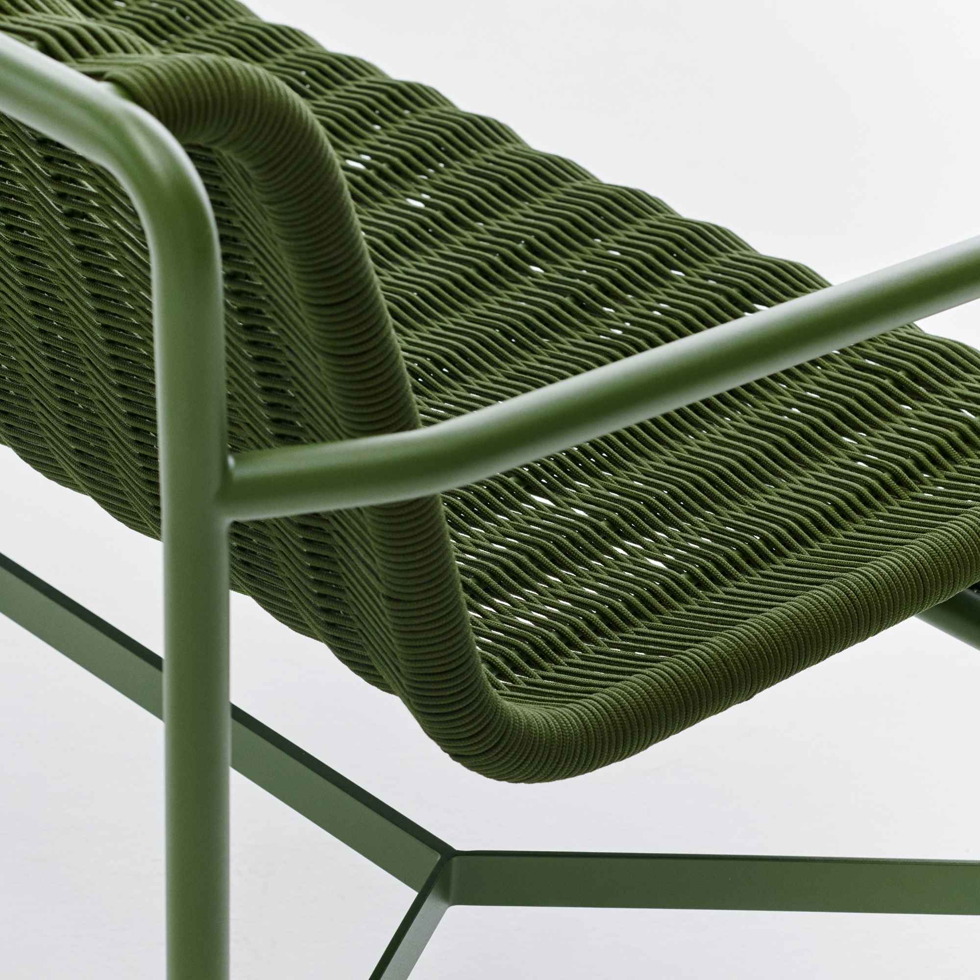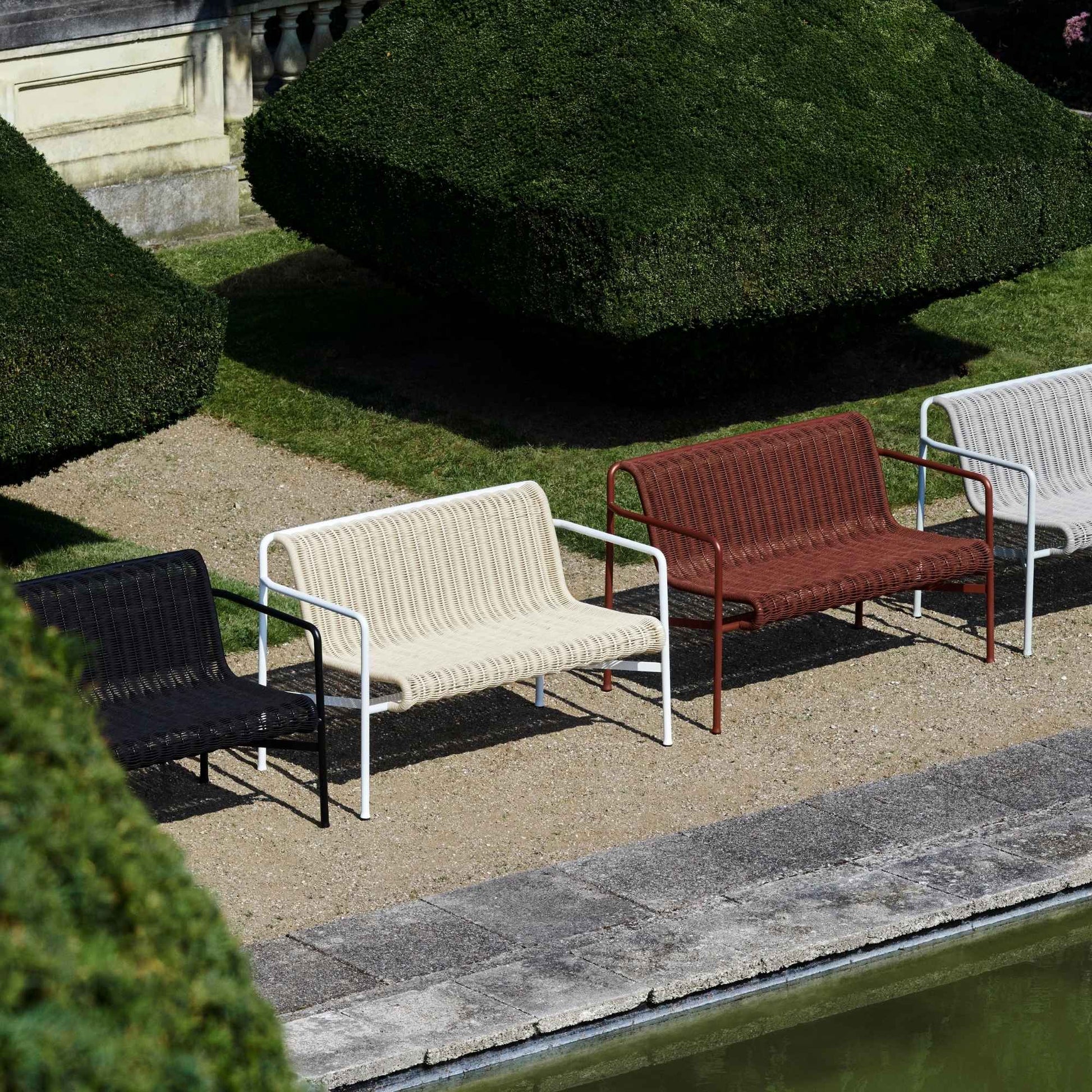 Crafted with a powder-coated steel frame, the outdoor dining bench features recycled polyester cord meticulously handwoven in a matching tonal colour. The Palissade Cord Dining Bench maintains the clean architectural lines and visual simplicity of the original Palissade design while introducing a softer, more inviting expression through its handwoven cord seat. This combination delivers exceptional comfort, durability, and weather resistance — perfect for long, relaxed moments outdoors.