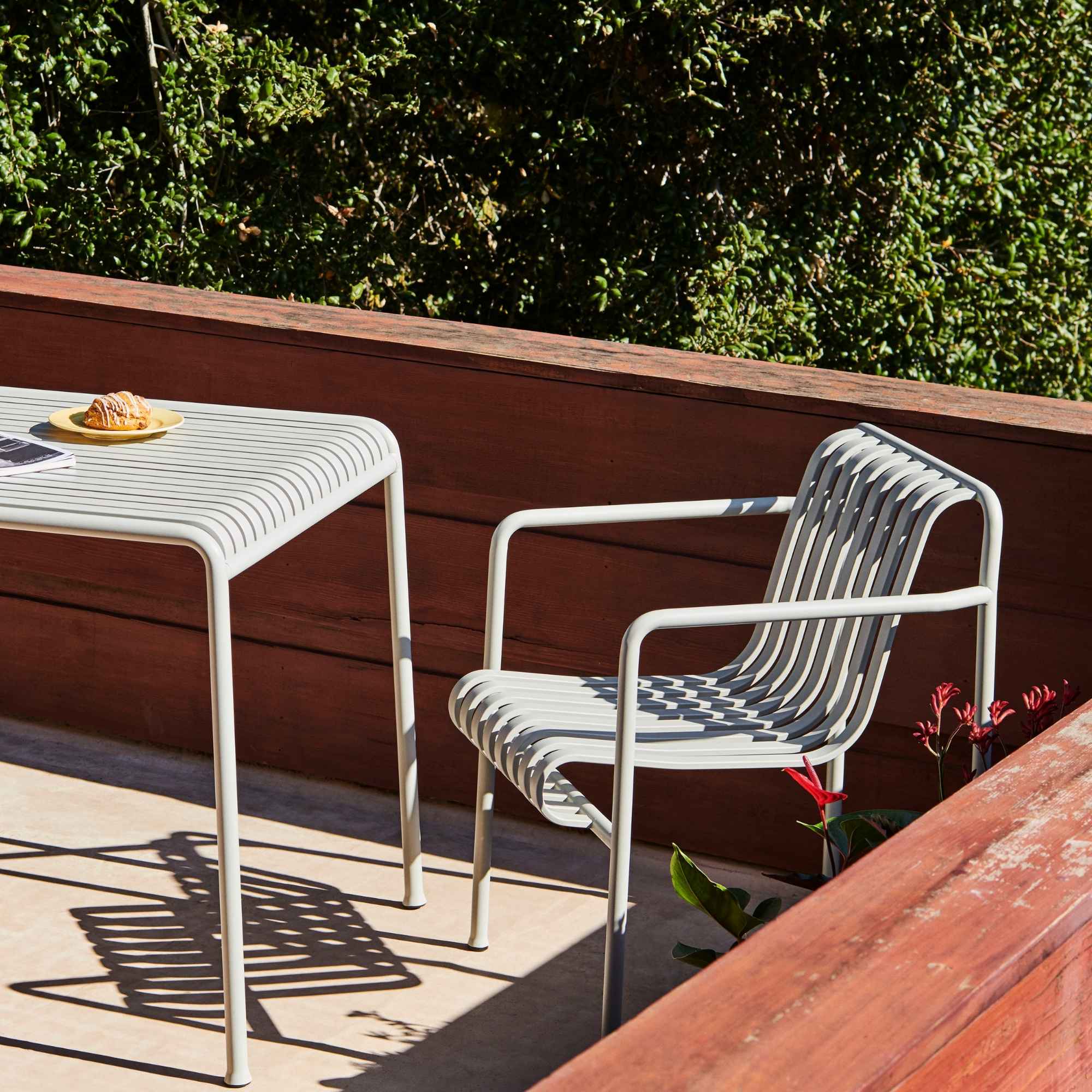 Designed for HAY by French brothers Ronan and Erwan Bouroullec, Palissade is a collection of outdoor furniture characterised by its elegant linear composition. Guided by the principle of symmetrical geometry, the Palissade furniture collection achieves a seamless expression of visual simplicity and enduring strength throughout. Designed in colour and form to integrate effortlessly into a natural landscape or urban setting, Palissade is suited to a wide variety of environments, from cafés and restaurants to gardens, terraces, and balconies. Available in powder-coated or hot-galvanised steel finishes.
