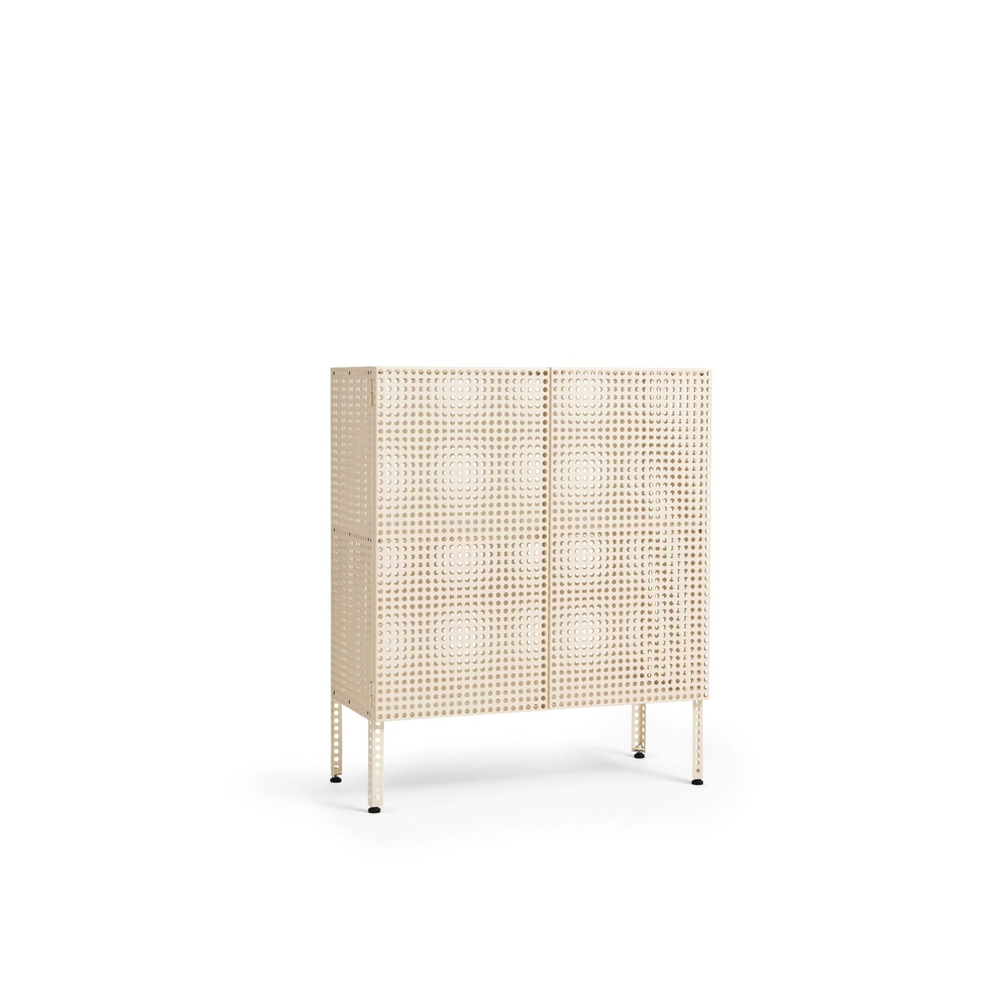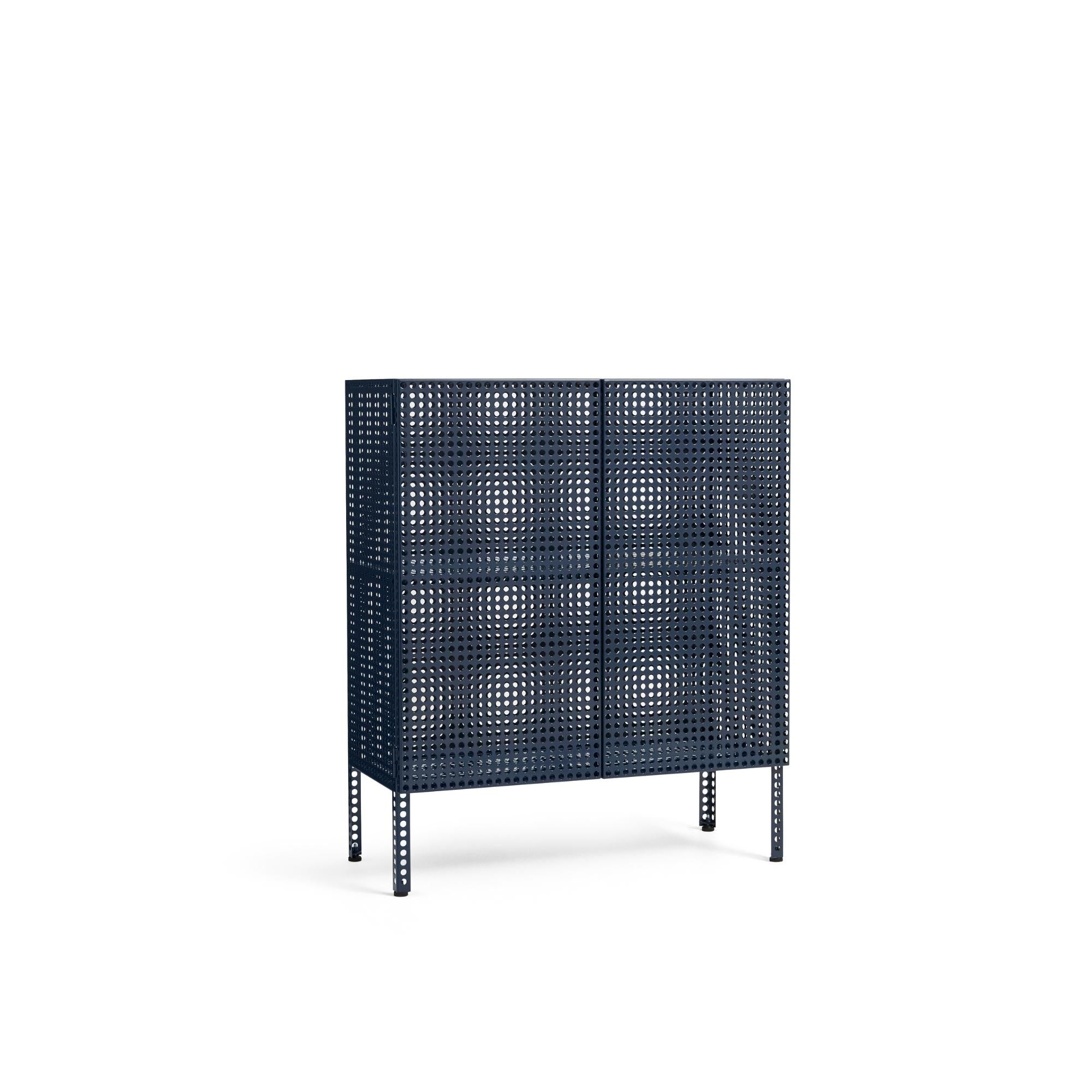 Defined by Muller Van Severen’s characteristic use of colour, form, and function, the Perforated Cabinet is a series of storage units that blend utility with bold aesthetics. The semi-transparent holes subtly conceal the contents while maintaining a sense of organisation. Available as wall-hanging and floor-standing variants, both featuring a magnetic door closure, they offer a practical and visually appealing solution for arranging and storing objects. Crafted in powder-coated steel, the cabinets come in different sizes and colours, providing a versatile storage solution for a wide range of domestic and public environments.