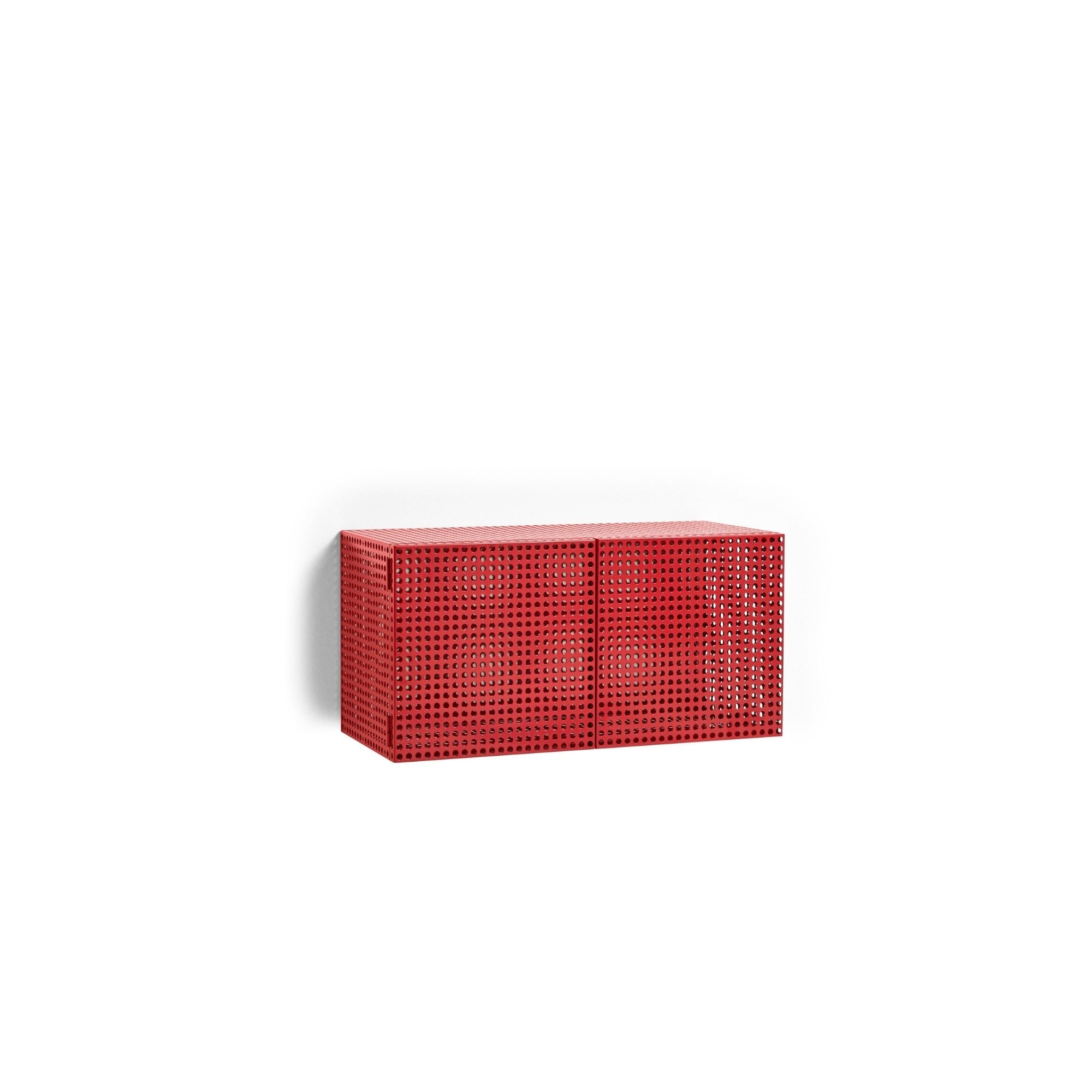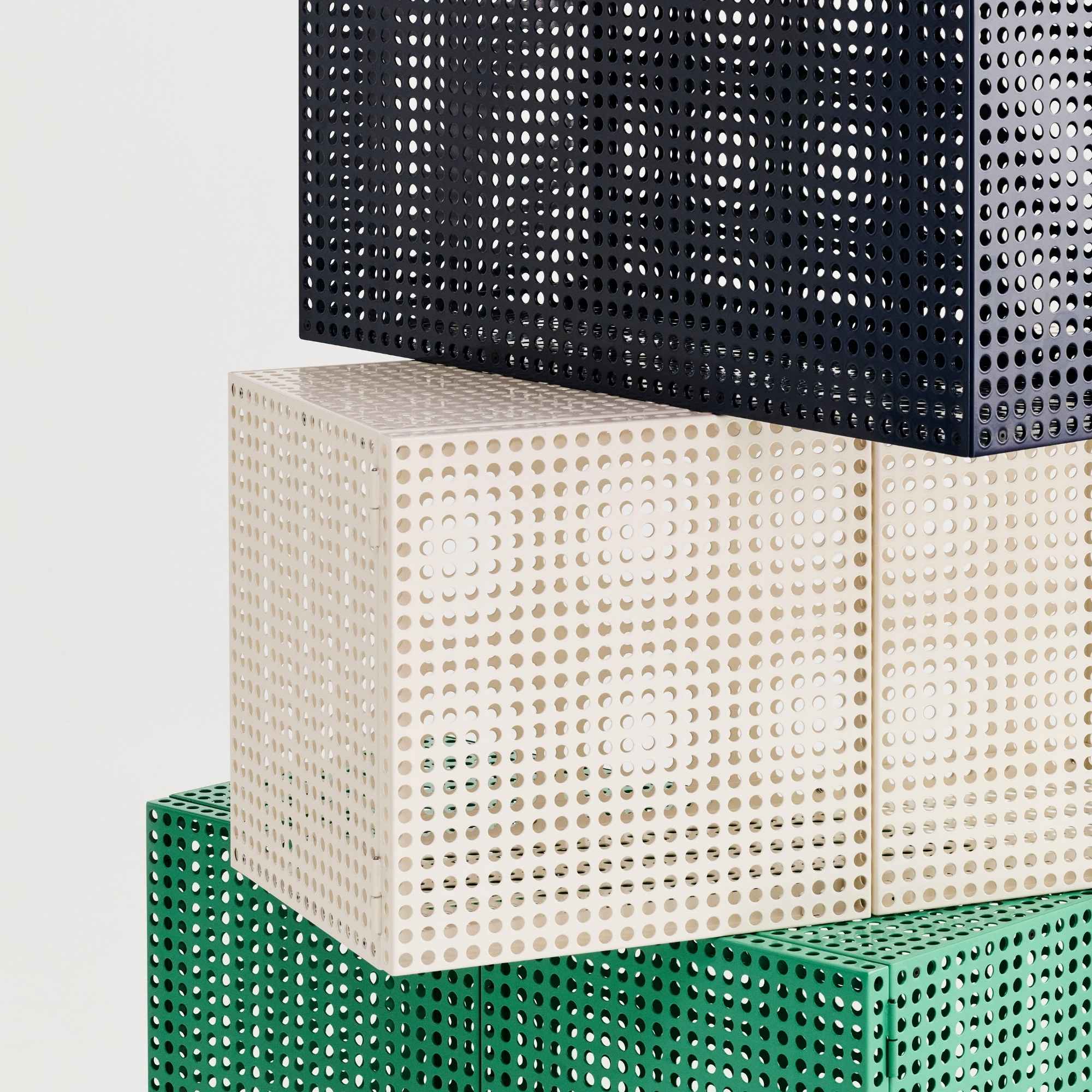 Defined by Muller Van Severen’s characteristic use of colour, form, and function, the Perforated Cabinet is a series of storage units that blend utility with bold aesthetics. The semi-transparent holes subtly conceal the contents while maintaining a sense of organisation. Available as wall-hanging and floor-standing variants, both featuring a magnetic door closure, they offer a practical and visually appealing solution for arranging and storing objects. Crafted in powder-coated steel, the cabinets come in different sizes and colours, providing a versatile storage solution for a wide range of domestic and public environments.