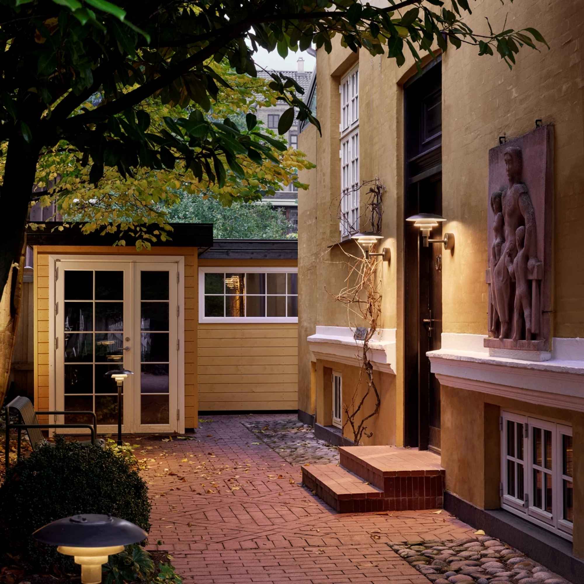 PH 3-2½ Wall provides a diffused, comfortable light for your outdoor environment. The luminaire has a beautiful black powder-coated finish, designed for outdoor use with ingress protection IP44. PH 3-2½ Wall lets you experience the perfect combination of function and danish design outdoors