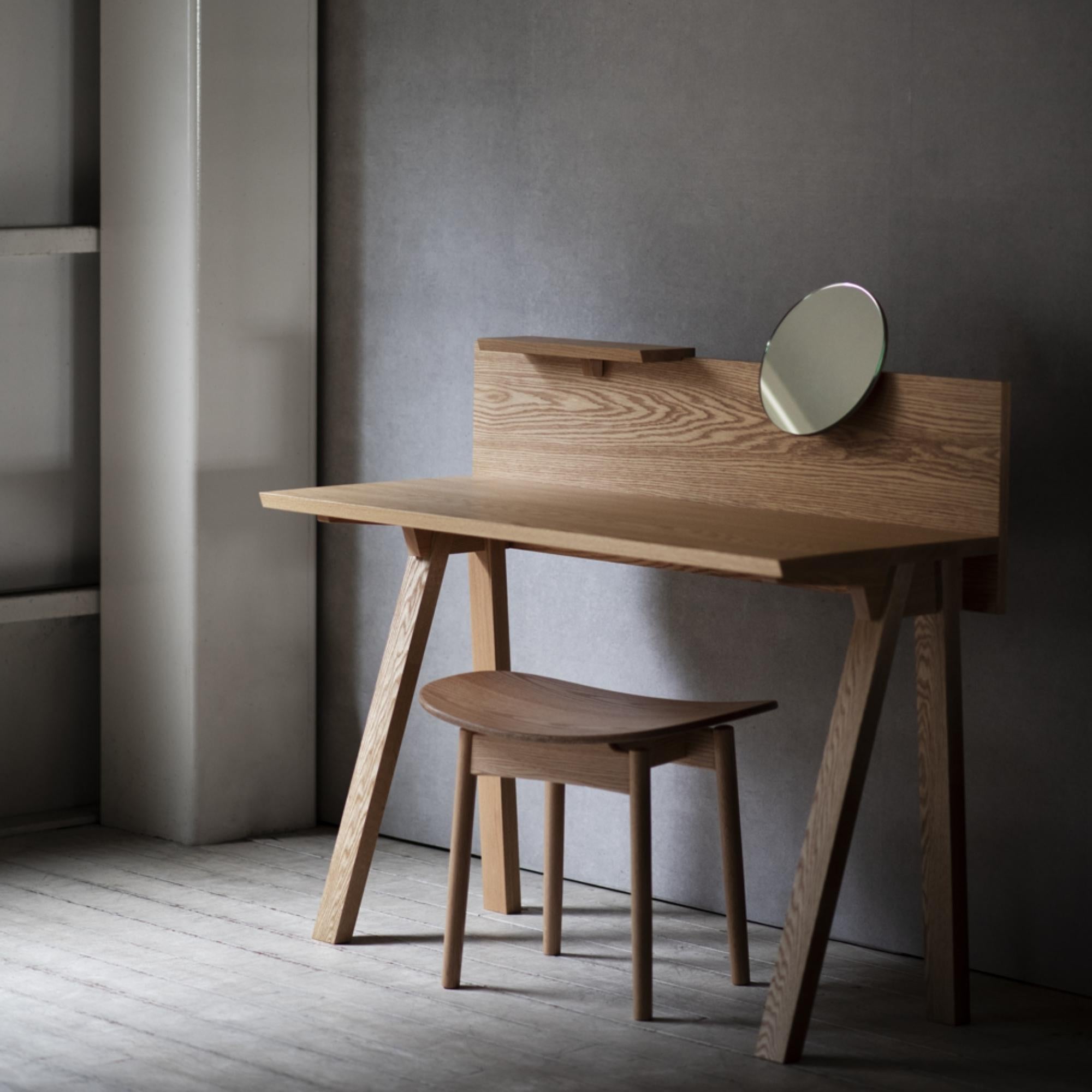 Sagyo desk is part of the Sagyo series of furniture. Sagyo means “work” in Japanese and this compact writing desk can be used in the living room, study or even in a small bedroom. Sagyo becomes a dressing table when used with accompanying magnetic shelf and mirror.