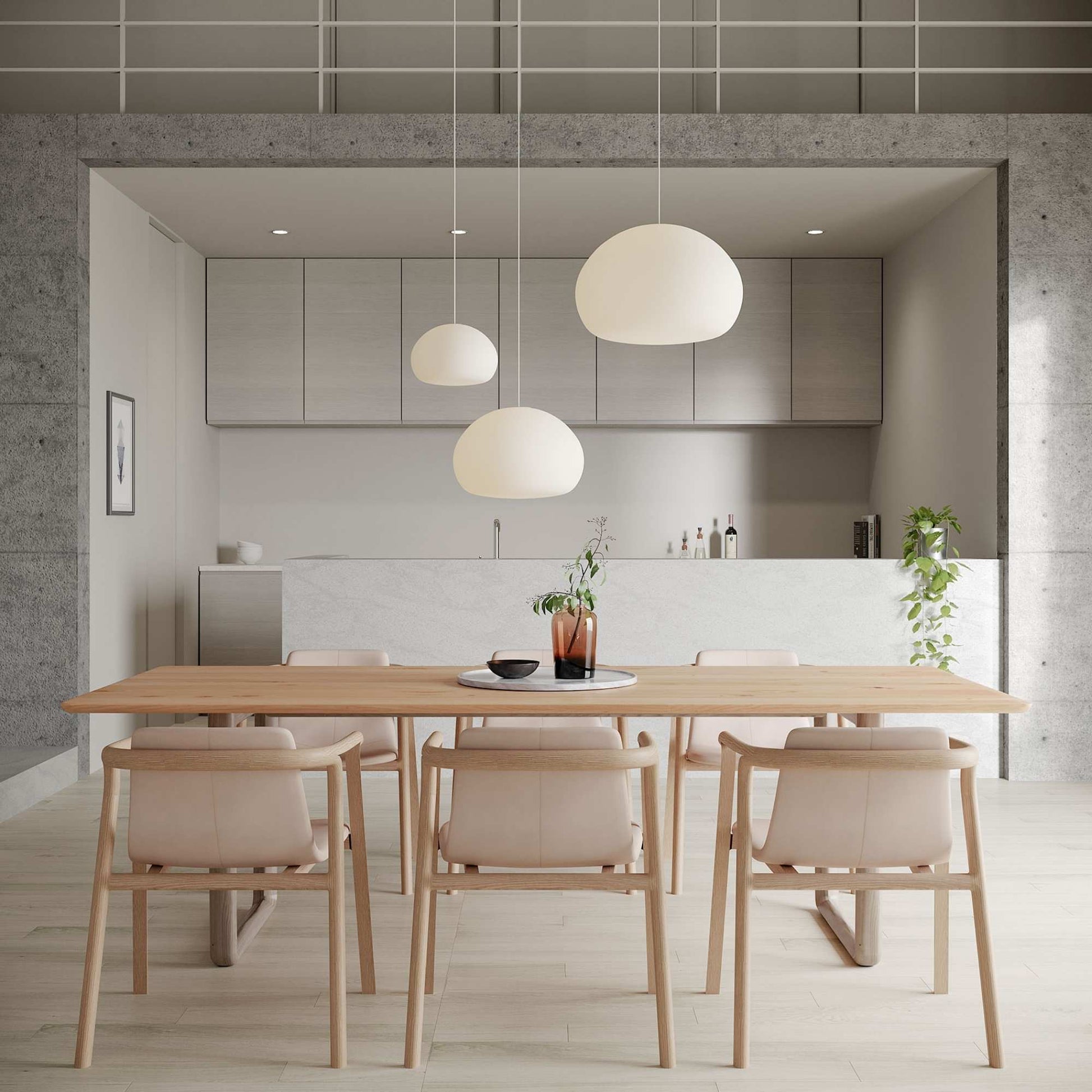 The SL table may look simple at first glance, but its legs are made of wood instead of metal, which not only imparts a touch of surprise but also warmth. Its elegant form makes it suitable as both a dining table or desk. Comes in two heights and custom sizes are available in increments of 50mm. A cable tray can also be added.