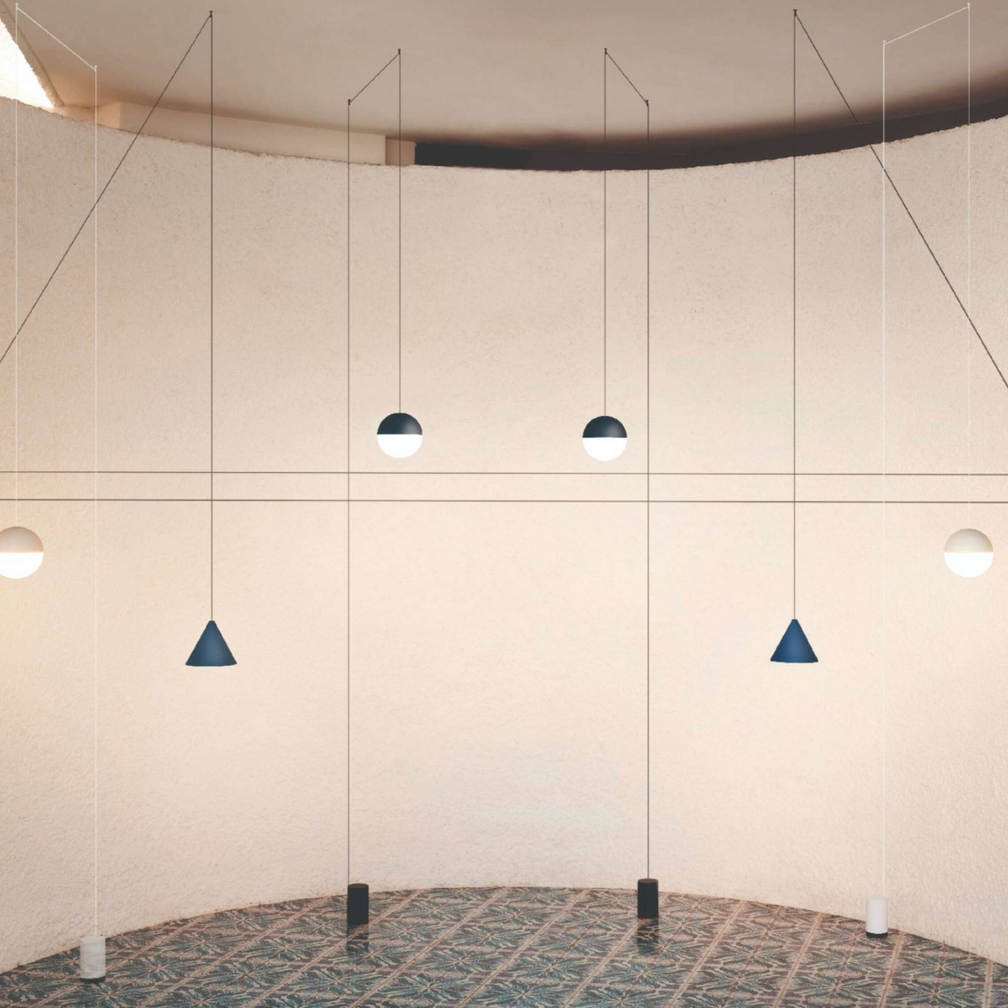 The String Light by Michael Anastassiades is a versatile and modern suspension lighting system designed to adapt seamlessly to any interior. Customisable and modular, the String Light's 12 metre Kevlar-reinforced coaxial cable lets you add spherical and conical shapes, creating unique compositions and tailored lighting effects in residential, commercial, or hospitality environments.