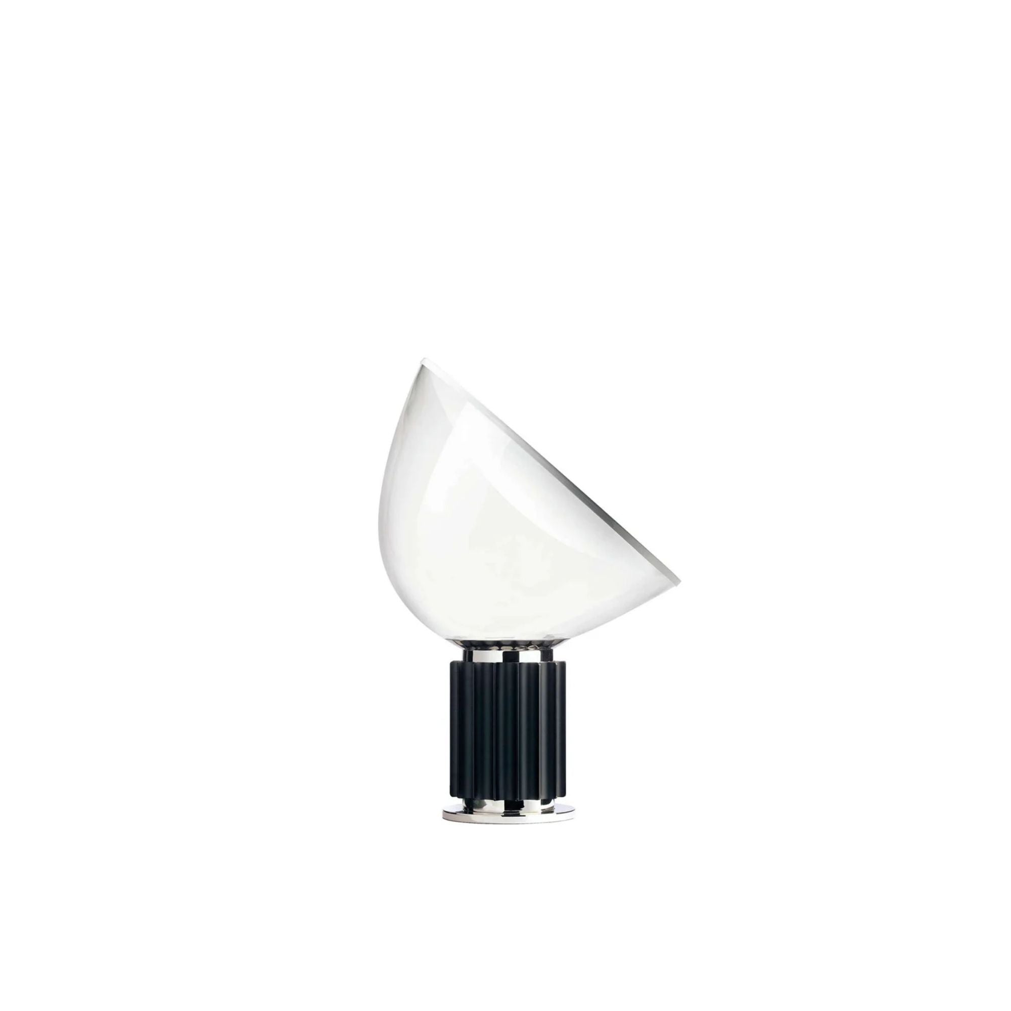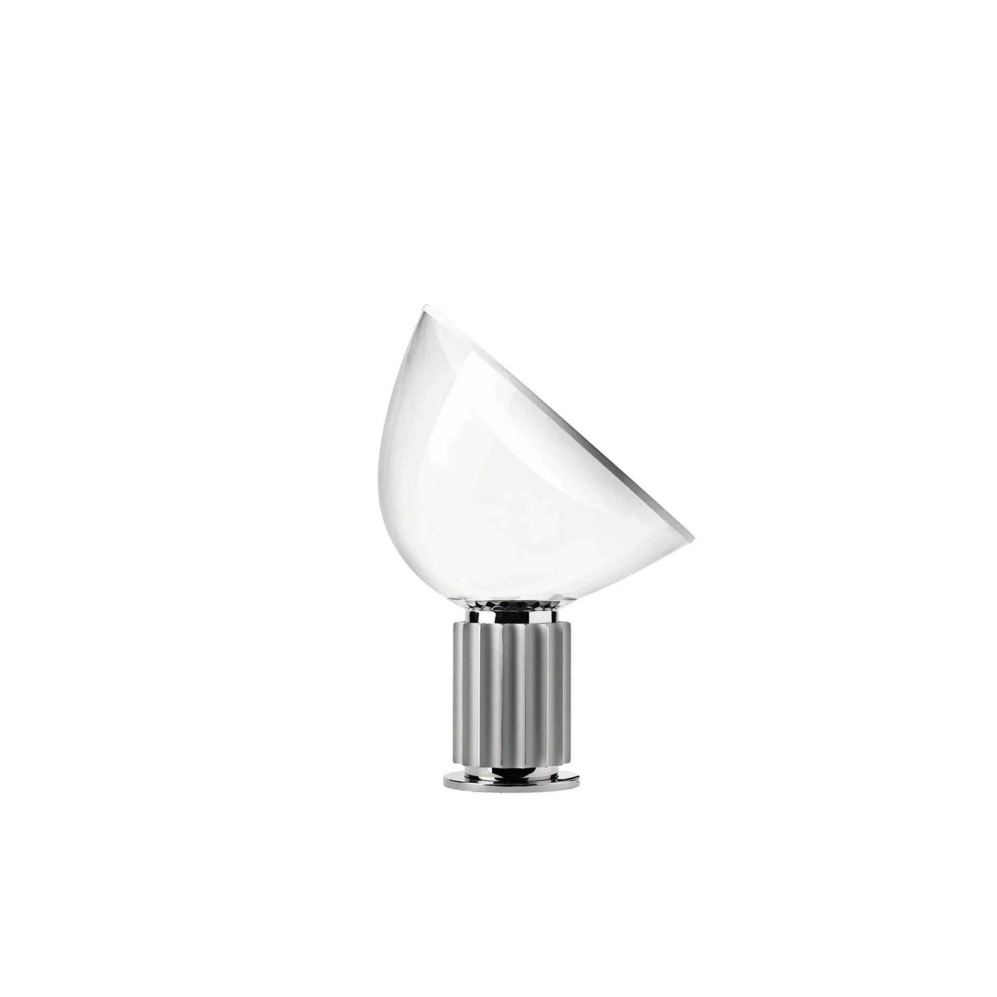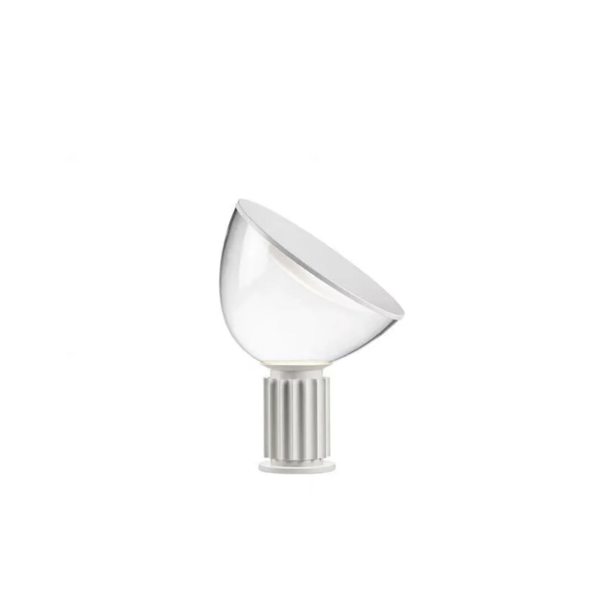 Designed by Achille and Pier Giacomo Castiglioni for FLOS in 1962, the Taccia Table Lamp is a celebrated icon of Italian design that blends functionality with playful elegance. Inspired by the concept of an upside-down hanging lamp, Taccia stands on a bold, sculptural base and emits soft, reflected light through its large blown-glass diffuser and concave reflector.