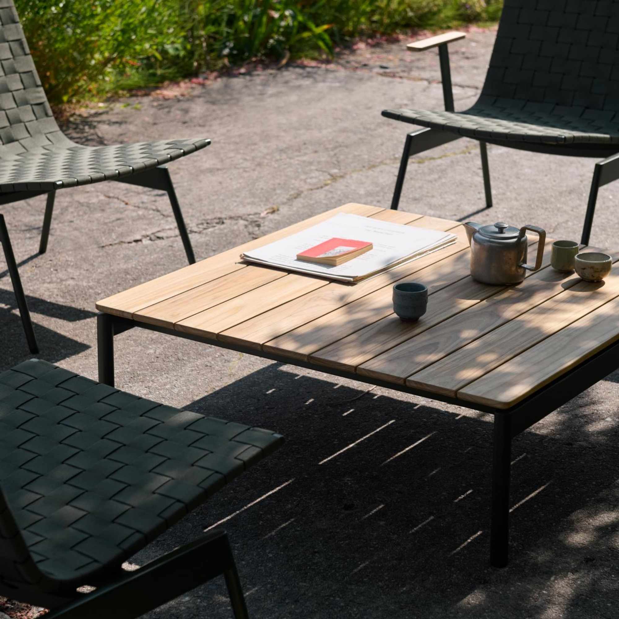 The Ville Coffee Table (AV50) by Anderssen & Voll combines modern Scandinavian design with outdoor functionality. Crafted with a durable steel frame and teak slats that age naturally to a silver-grey patina, it’s ideal for terraces, patios, and alfresco living, perfectly complementing the Ville dining collection.