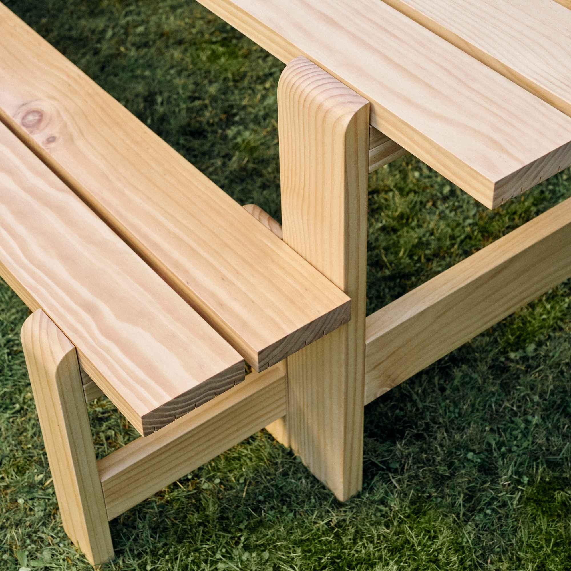 Hannes & Fritz’s Weekday Bench was inspired by their impromptu solution to a lack of seating at a dinner party. Retaining the original idea of bringing people together, the Weekday Bench combines a solid, robust presence with softly rounded joints, conveying a sense of warmth and familiarity that invites shared dining and a social atmosphere. Featuring the same simple construction as the classic picnic bench, it is made in strong, durable pine planks that will patinate beautifully and last for many years to come.