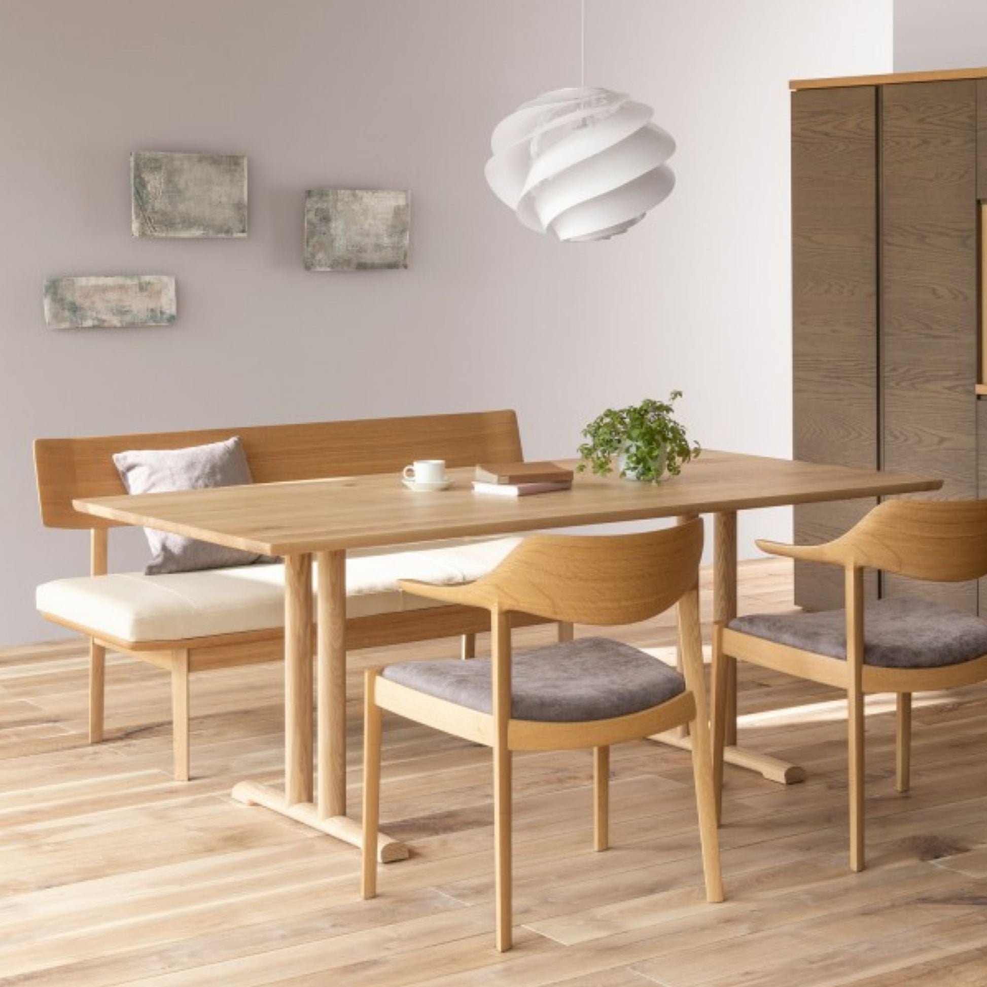 As suggested by its name, this bestselling collection centres around the motif of a bird spreading its wings. Designer Sadogawa has managed to elicit such incredible delicacy from solid wood. The details, such as the seamless joinery between the arms and legs, reveal the deep skillset of CondeHouse's artisans.